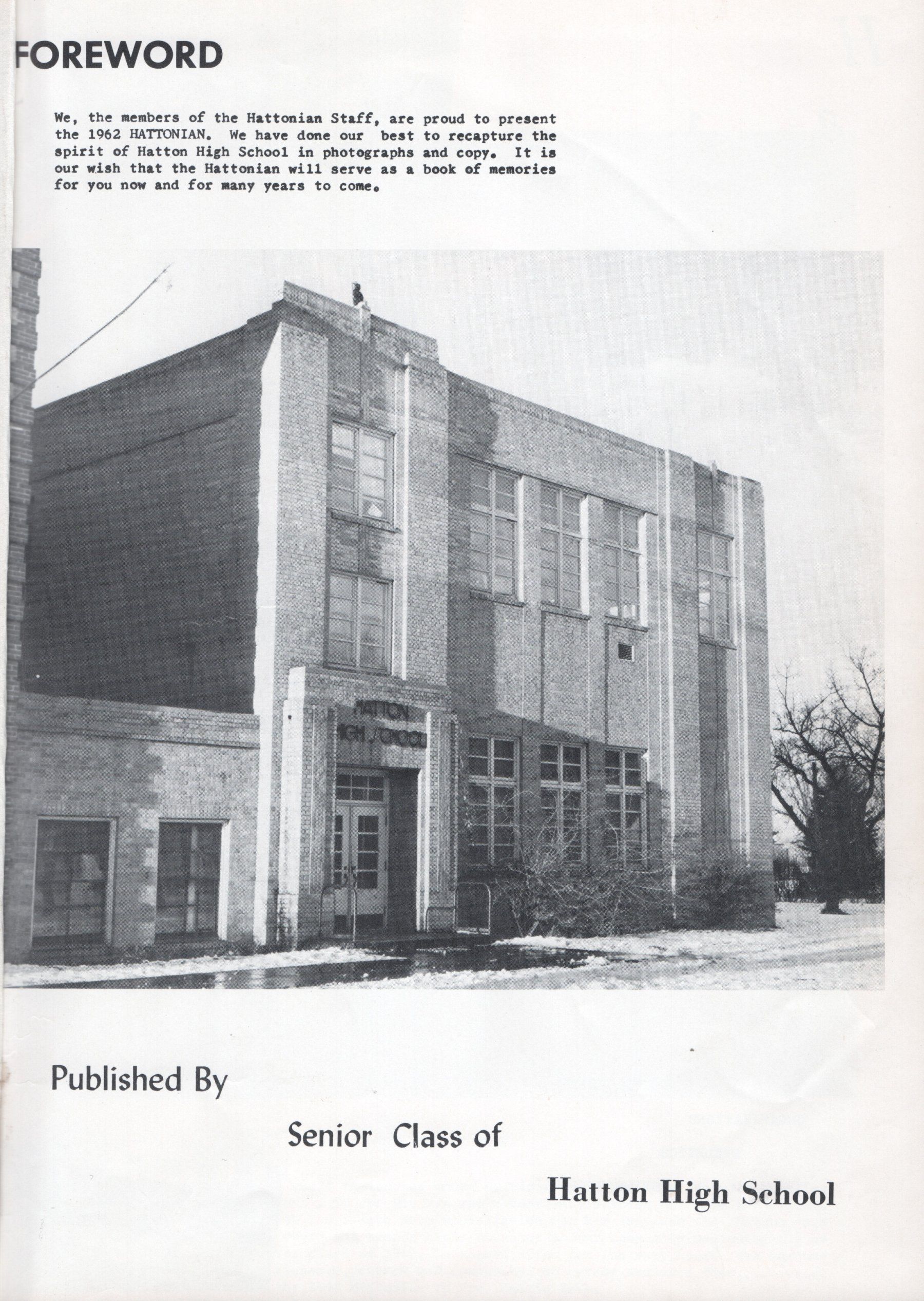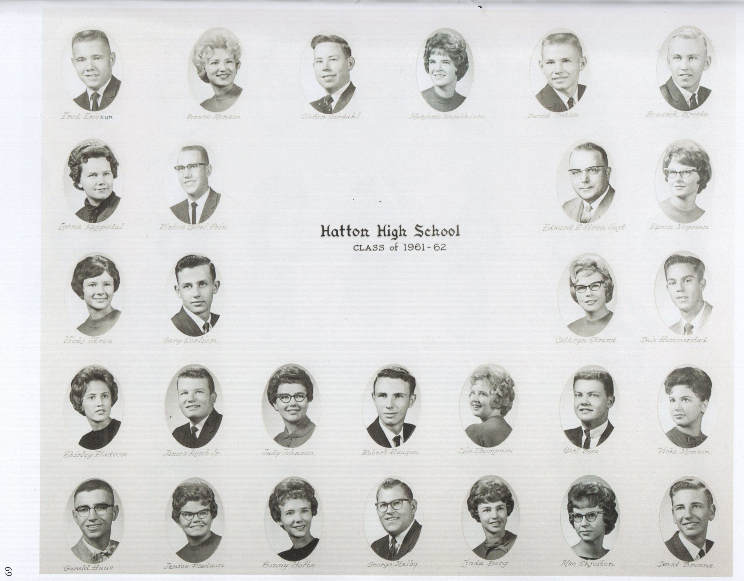 A photograph of the Hatton High School Class of 1962 is included on page 69 in the All School Reunion book, "Hatton Flyers".