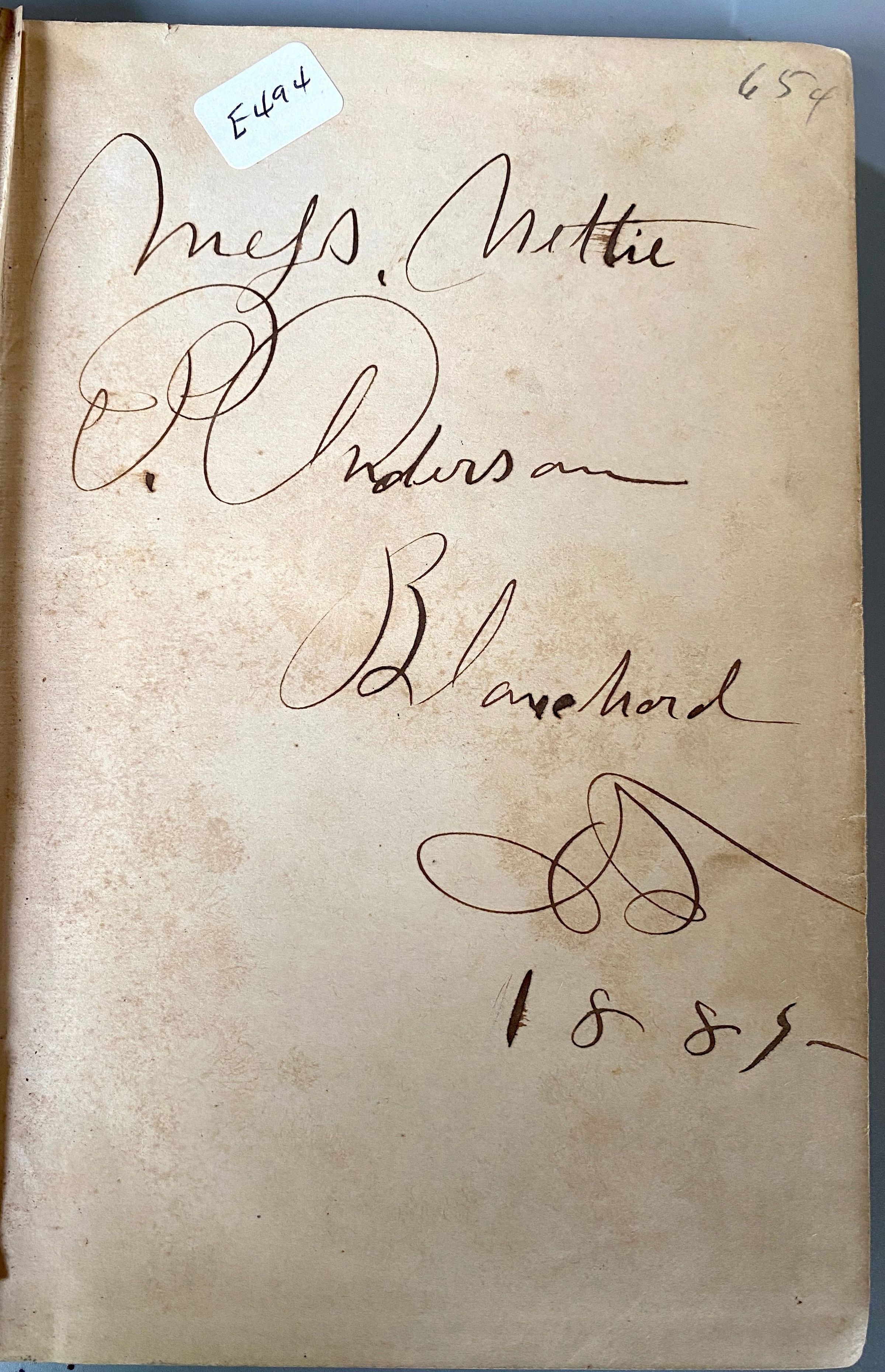 Used by Nettie R. Anderson in 1885 at the Blanchard SchoolCataloged By