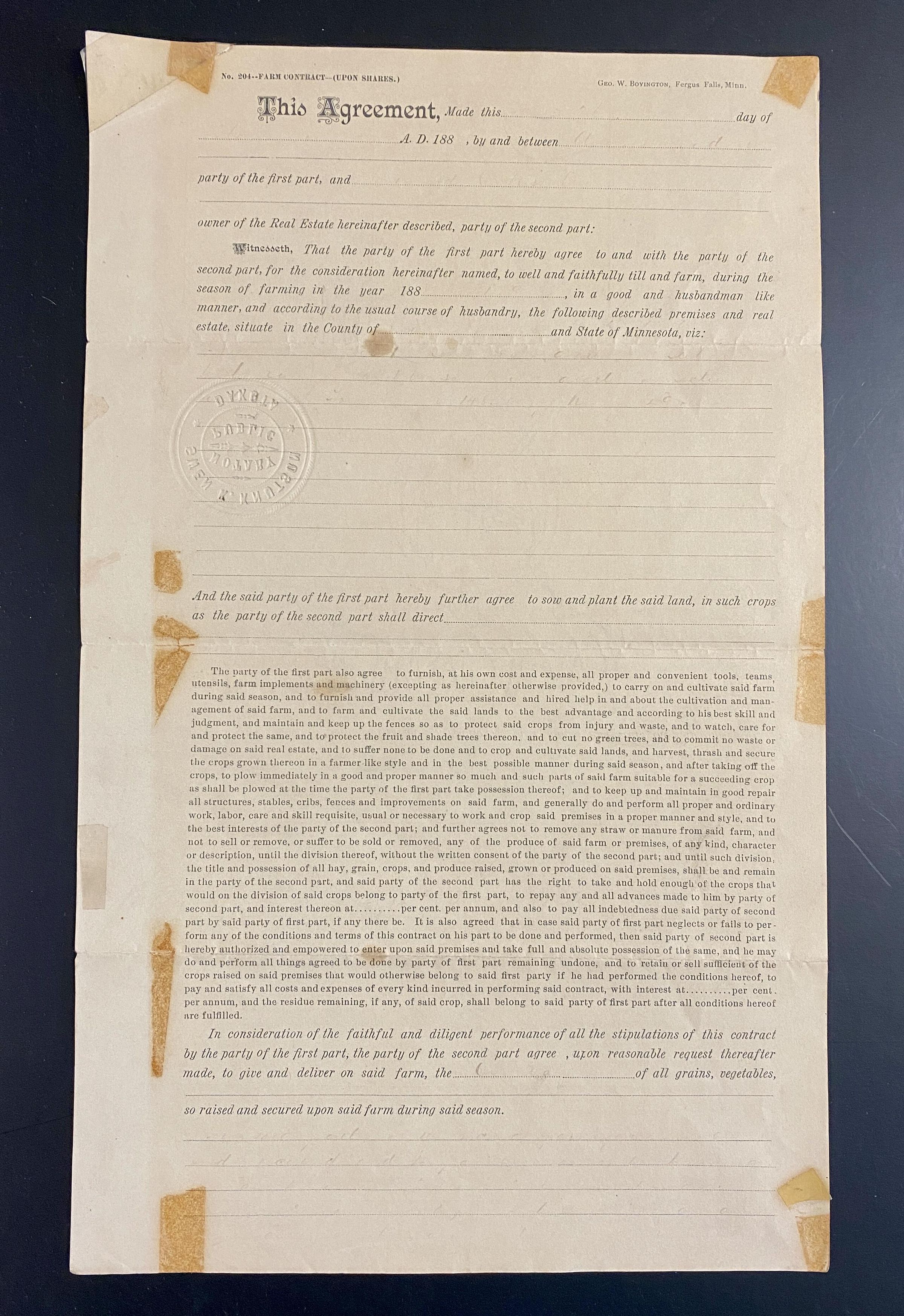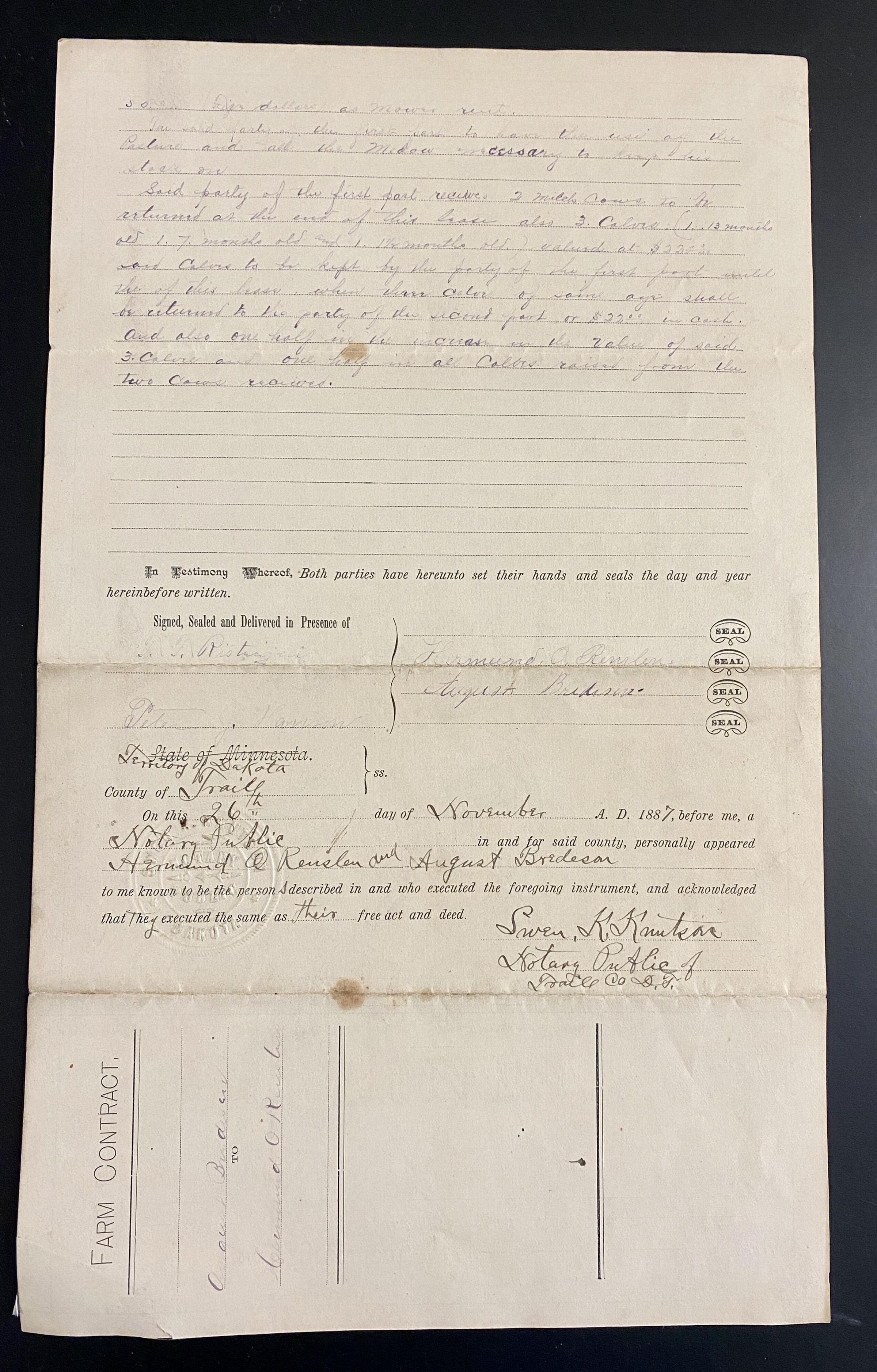 Farm Contract from November 26, 1887. Is faded and quite hard to read.