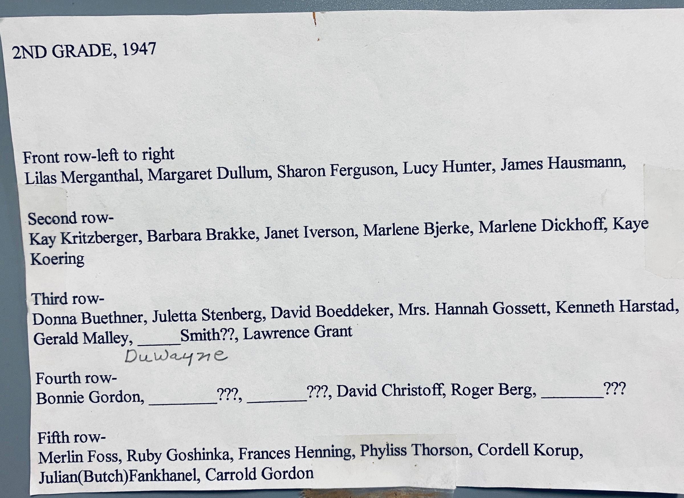 Kenneth Harstad, Kay Kritzberger, Merlin Foss, Cordell Korup, Lawrence Grant, Lilas Mergenthal, Janet Iverson, James Hausmann, Donna Buethner, Roger Berg, Ruby Goshinka, Kaye Koering, Gerald Malley, Marlene Dickhoff, Lucy Hunter, Sharon Ferguson, Barbara Brakke, David Christoff, Margaret Dullum, Julietta Stensberg, Phyliss Thorson, David Boeddeker, Julian (Butch) Fankhanel, Carrold Gordon, Frances Henning, Marlene Bjerke, Bonnie Gordon, Hannah Gossett