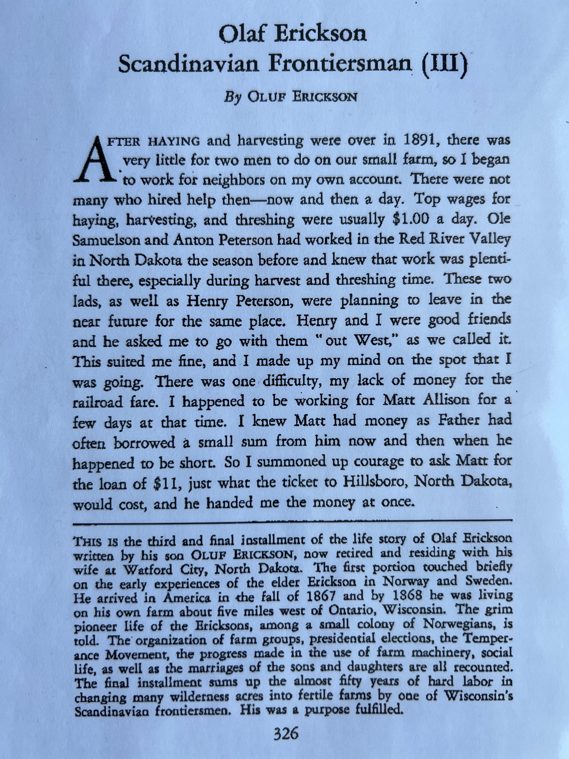 Erickson family: Olaf Erickson’s life by Oluf EricksonEntry/Object ID