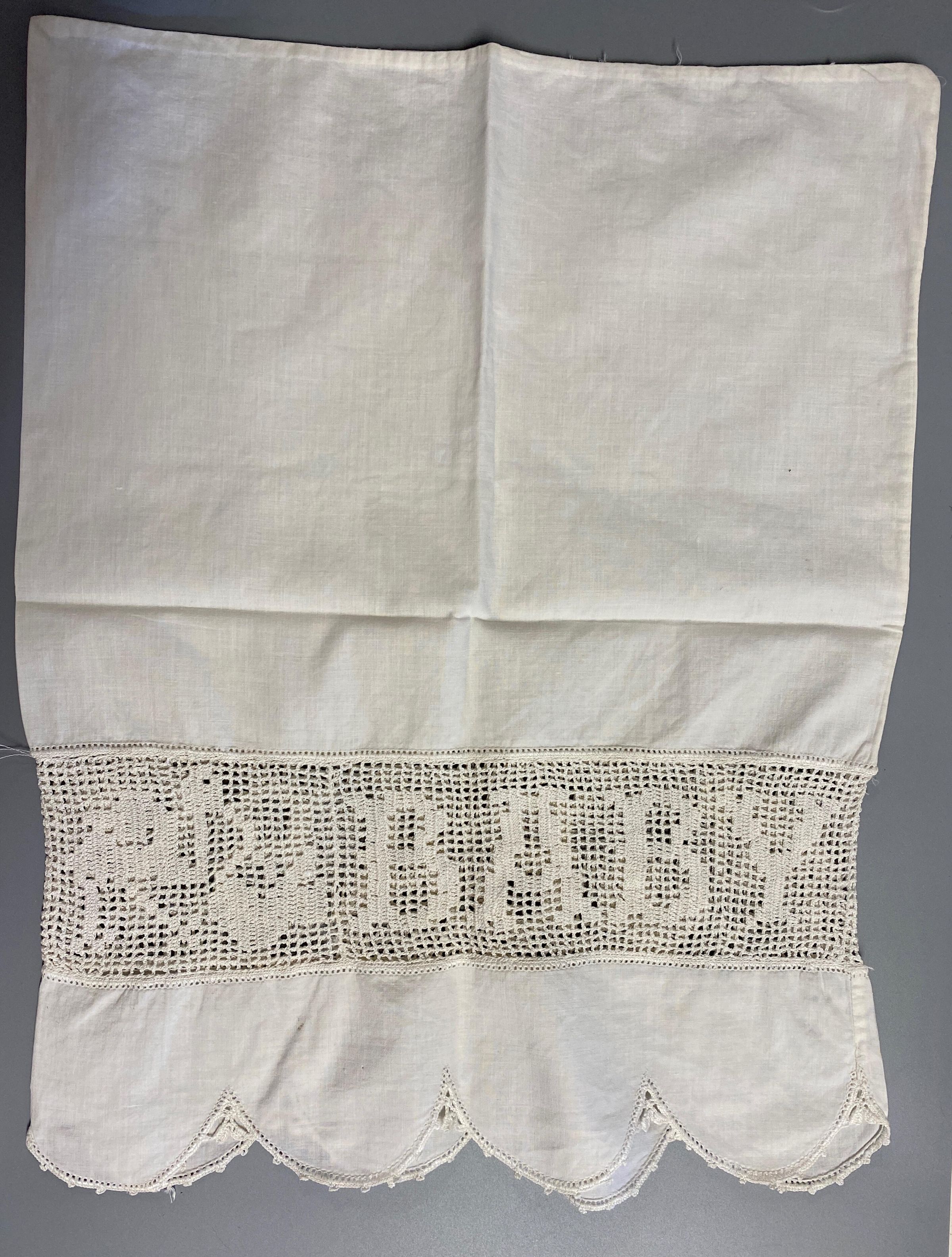 Small Pillow Case with embroidered word baby and a storkCataloged By