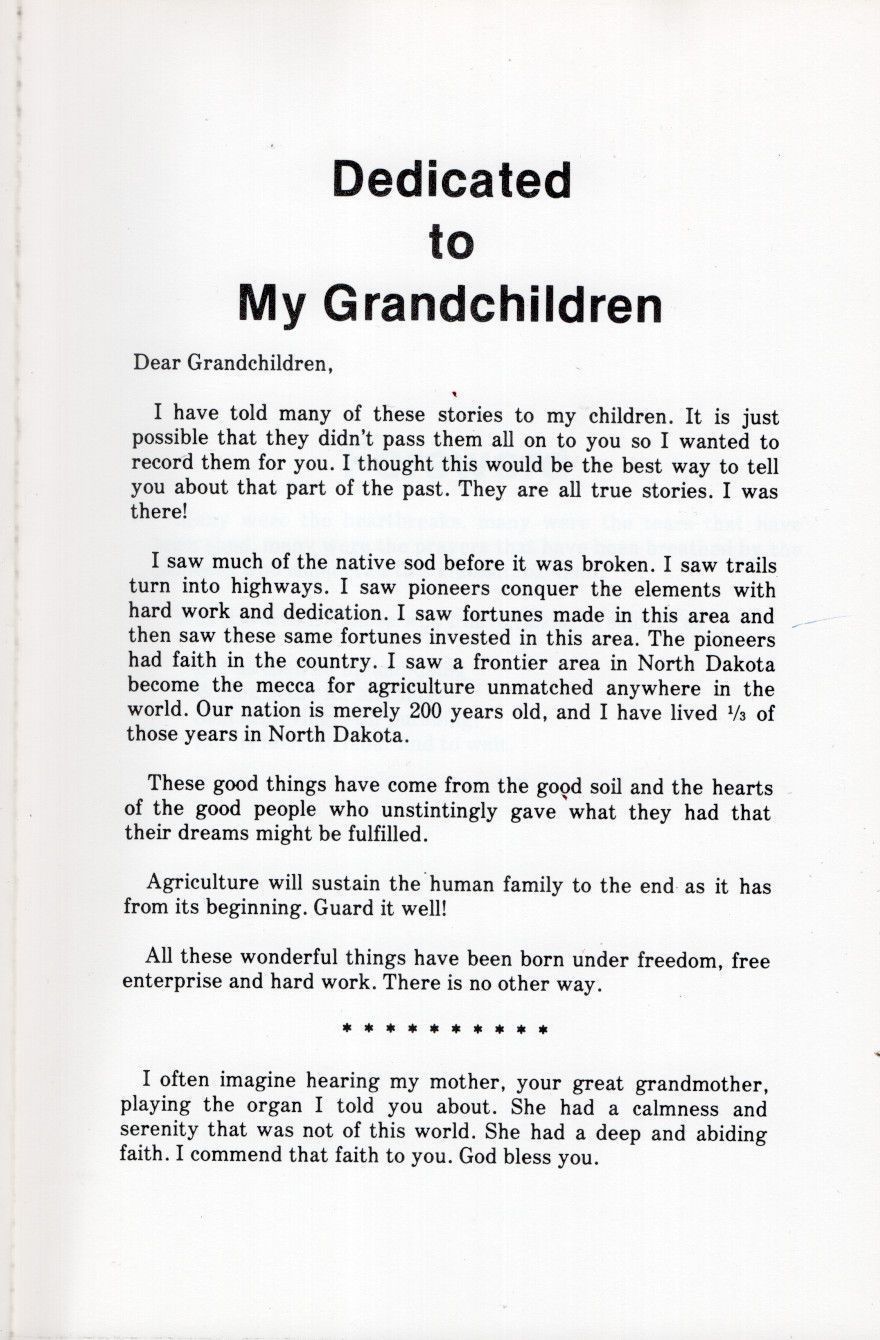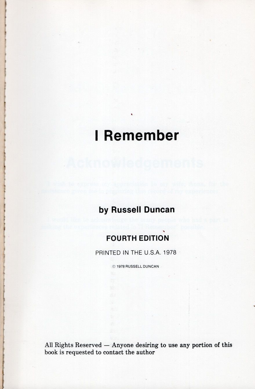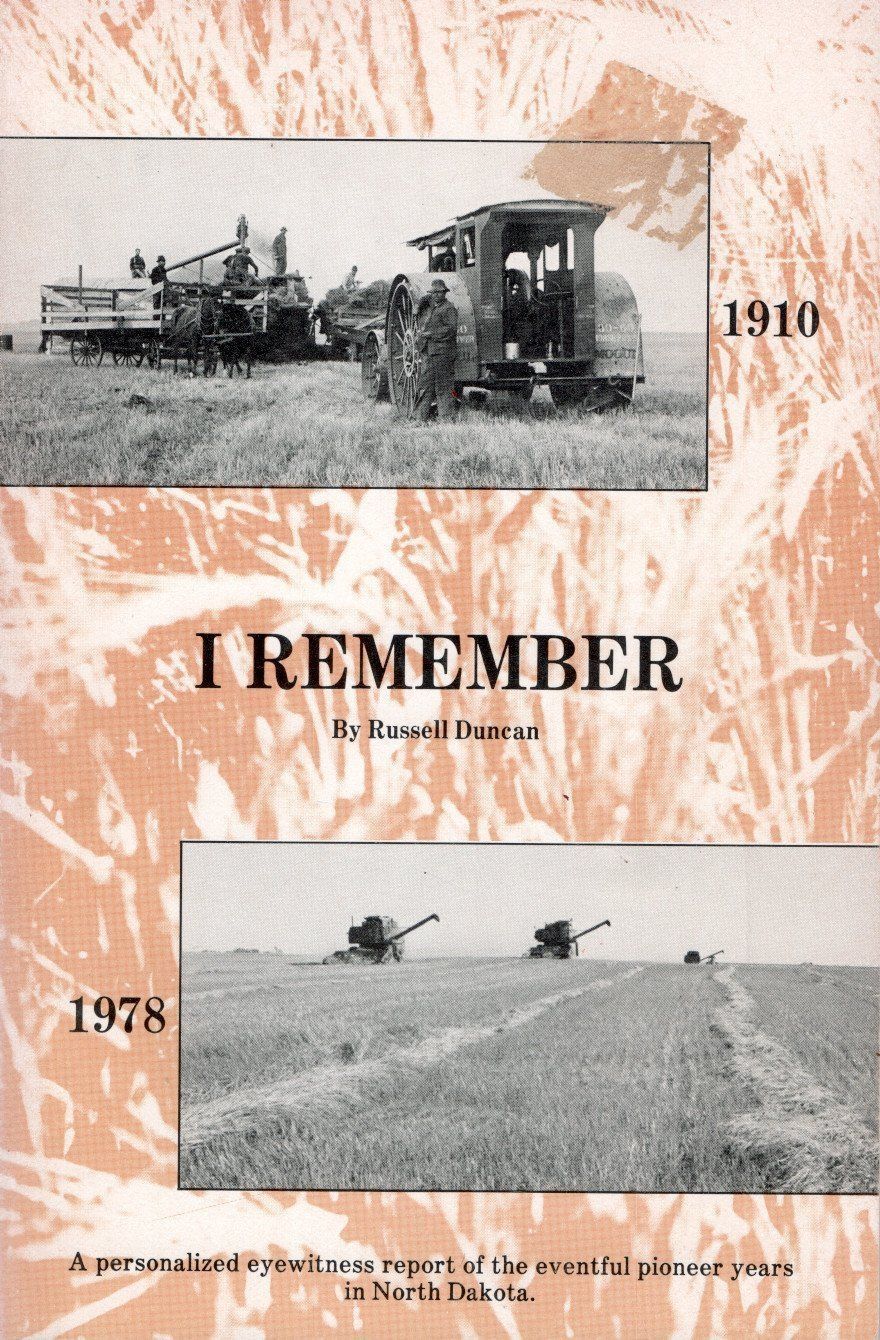 In 1978, Russell Duncan, published a book titled "I Remember: A personalized eyewitness report on the eventful pioneer years in North Dakota". Russell was born in 1910 on a farm near Calvin, North Dakota, a small town located in Cavalier County in northeastern ND. Russell's 128-page book describes what life was like for a pioneer family in North Dakota. Russell dedicated his book to his grandchildren.Acquisition