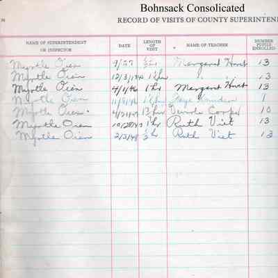 Teacher Vernola Cooper also kept a record of visitations by Traill County Superintendent of Schools, Myrtle Oien.Acquisition