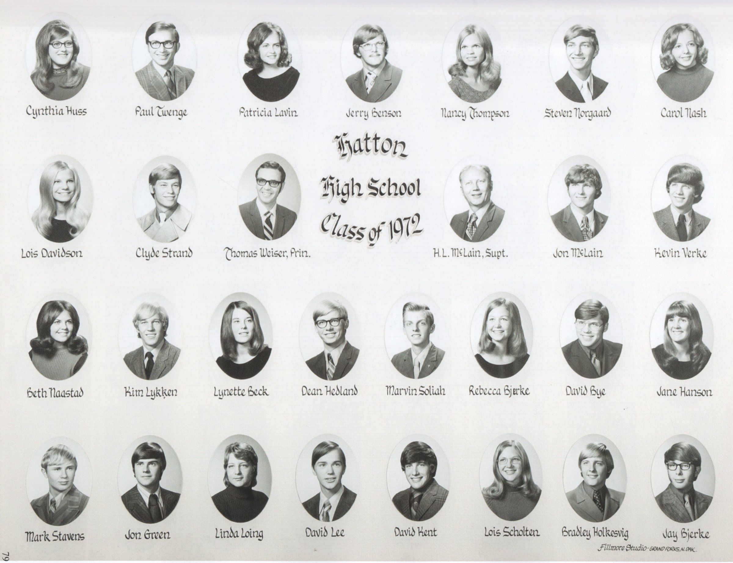A photograph of the Hatton High School Class of 1972 is included on page 79 in the All School Reunion book, "Hatton Flyers".