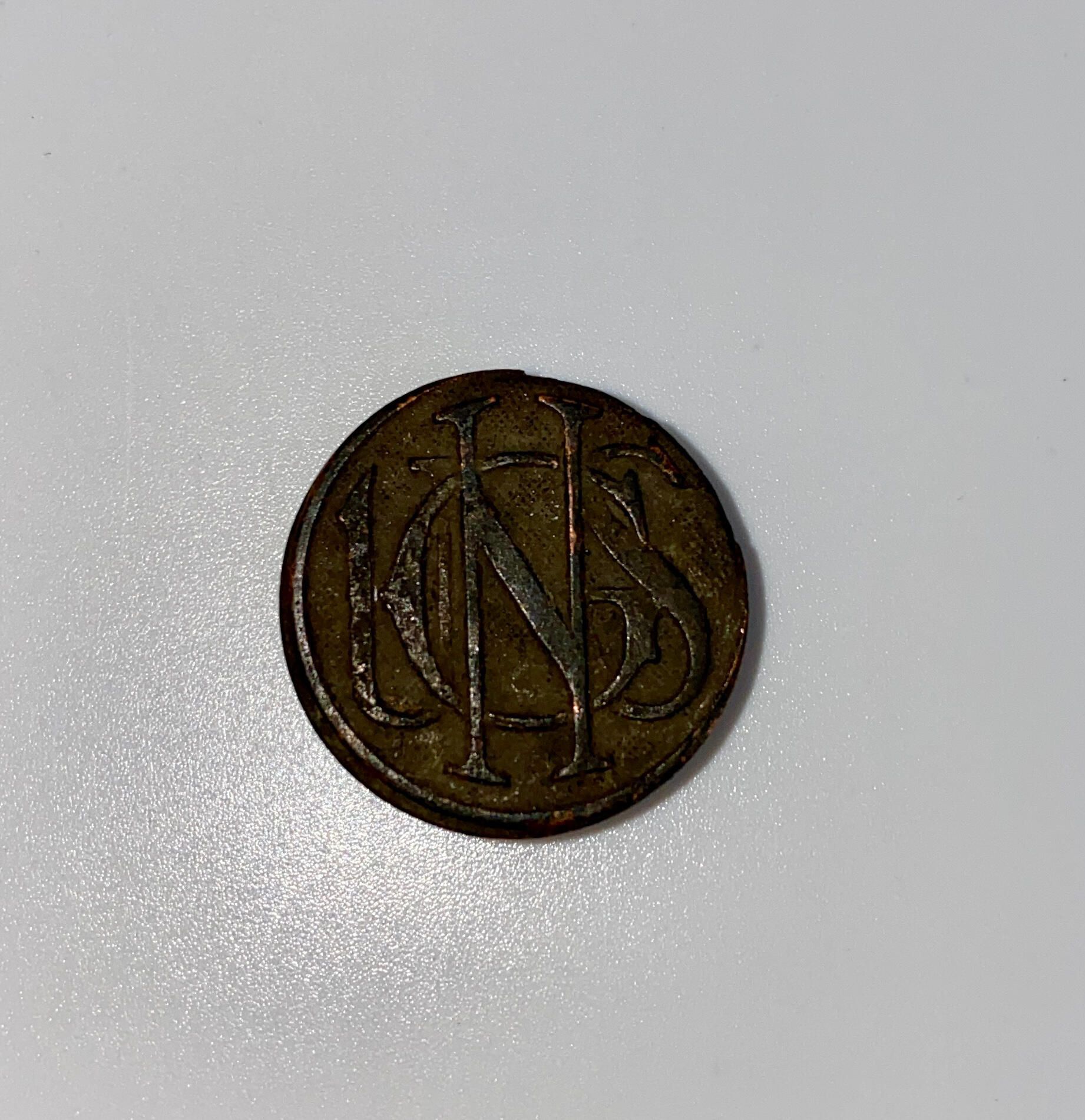 Russell Smith found this button while metal detecting in Southwest Hillsboro.Cataloged By