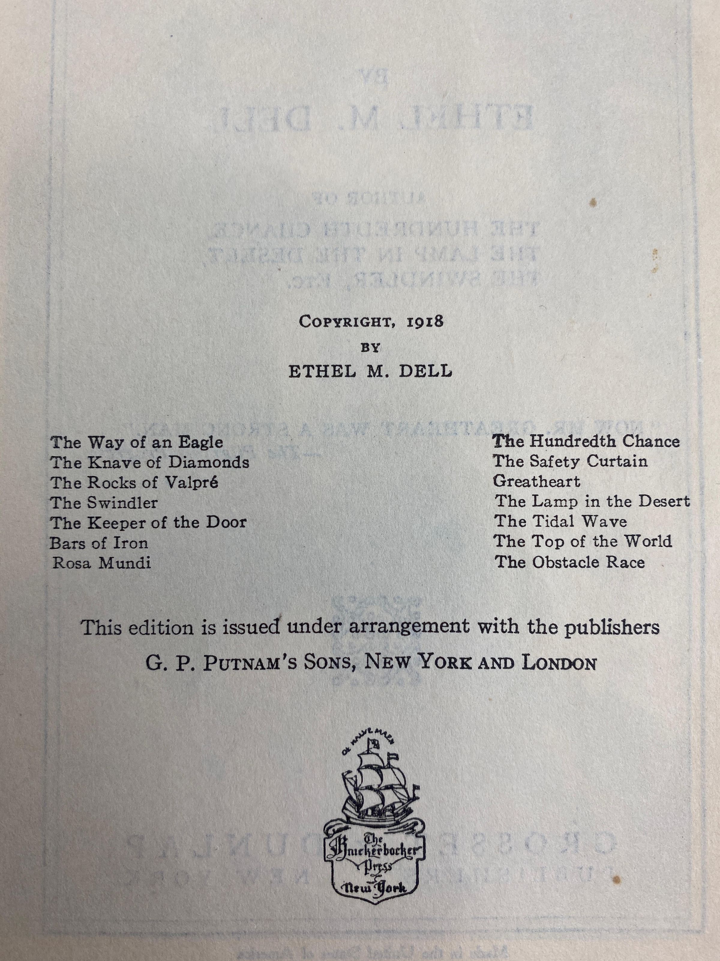 Greatheart by Edith M. Dell - 1918. Published by G. P. Putman's Sons, New YorkCataloged By
