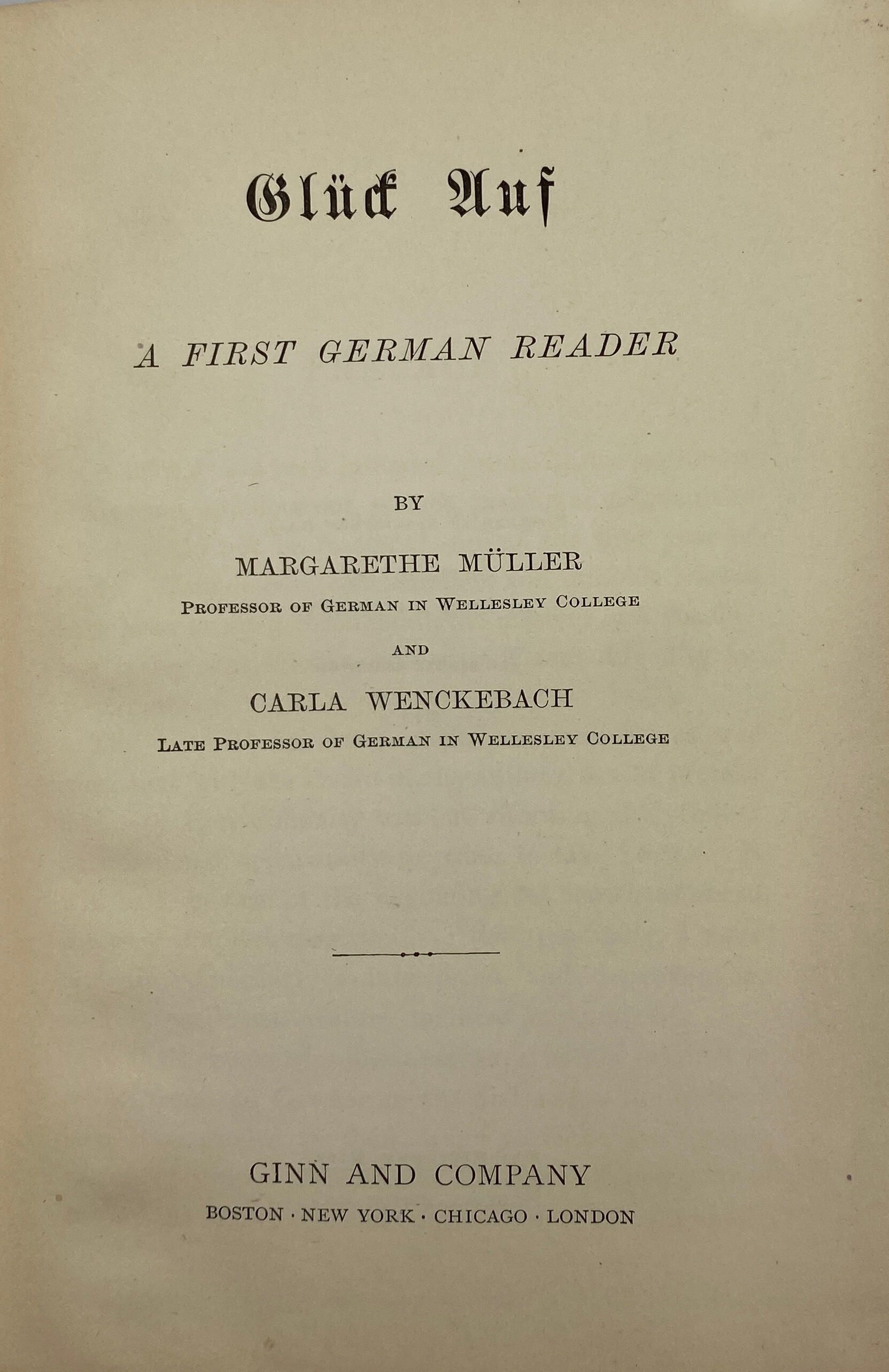 Gluck Auf (Good luck), a first German reader by Muller & Wenckebach, 1901. Published by Ginn and Company, Boston, USA.Cataloged By
