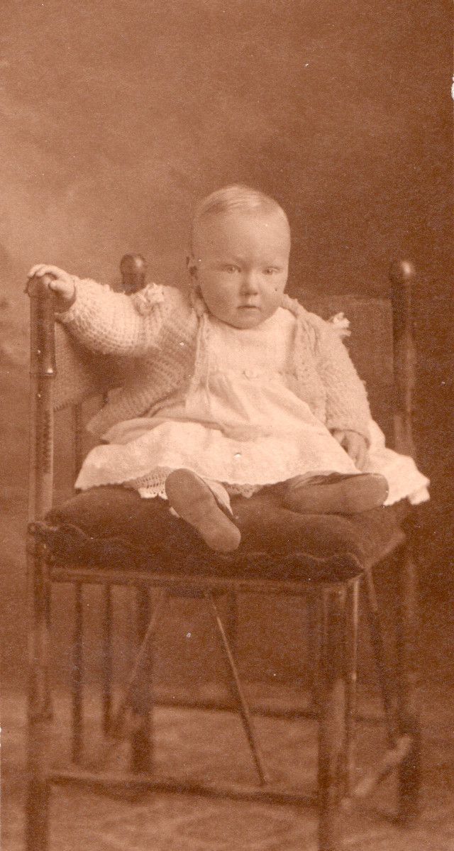 Oscar and Pauline's only son, Chester Orlyn Norby, was born on 26 February 1916 in Grand Forks [baby photo, below]. Chester was 3 in the 1920 US Census. At the time of the 1930 US Census, Chester was 14 and lived with his father Oscar, stepmother Mattie, and sisters, on Chestnut Street in Grand Forks, ND. In 1940, Chester, 24, continued to reside on Chestnut Street, and he was employed as a "Salesman" in a "Retail Furniture Store". On 7 June 1943, Chester O. Norby married Lois L Kruschke. Lois was born on 6 March 1926 in Ridgely in Nicollet County, MN. Chester served in the US Army during WWII, and Chester and Lois Norby's first daughter, Paula was born in Georgia. By 1950, Chester and Lois resided on Nth 10th Street in Breckenridge in Wilkin County, MN [1950 US Census]. In 1950, Chester was employed as a "Merchant of "Retail & wholesale tools". Also in 1950, Chester and Lois had another daughter, Barbara Norby, born on 1 August 1950 in Breckenridge, MN. Chester Orlyn Norby lived to the age of 86, passing away on 26 March 2002 in Fargo, ND [ND Death Certif.]. Lois lived to the grand age of 97, passing away on 24 June 2023 in Fargo. Chester and Lois were interred in the Riverside Cemetery in Breckenridge, MN.