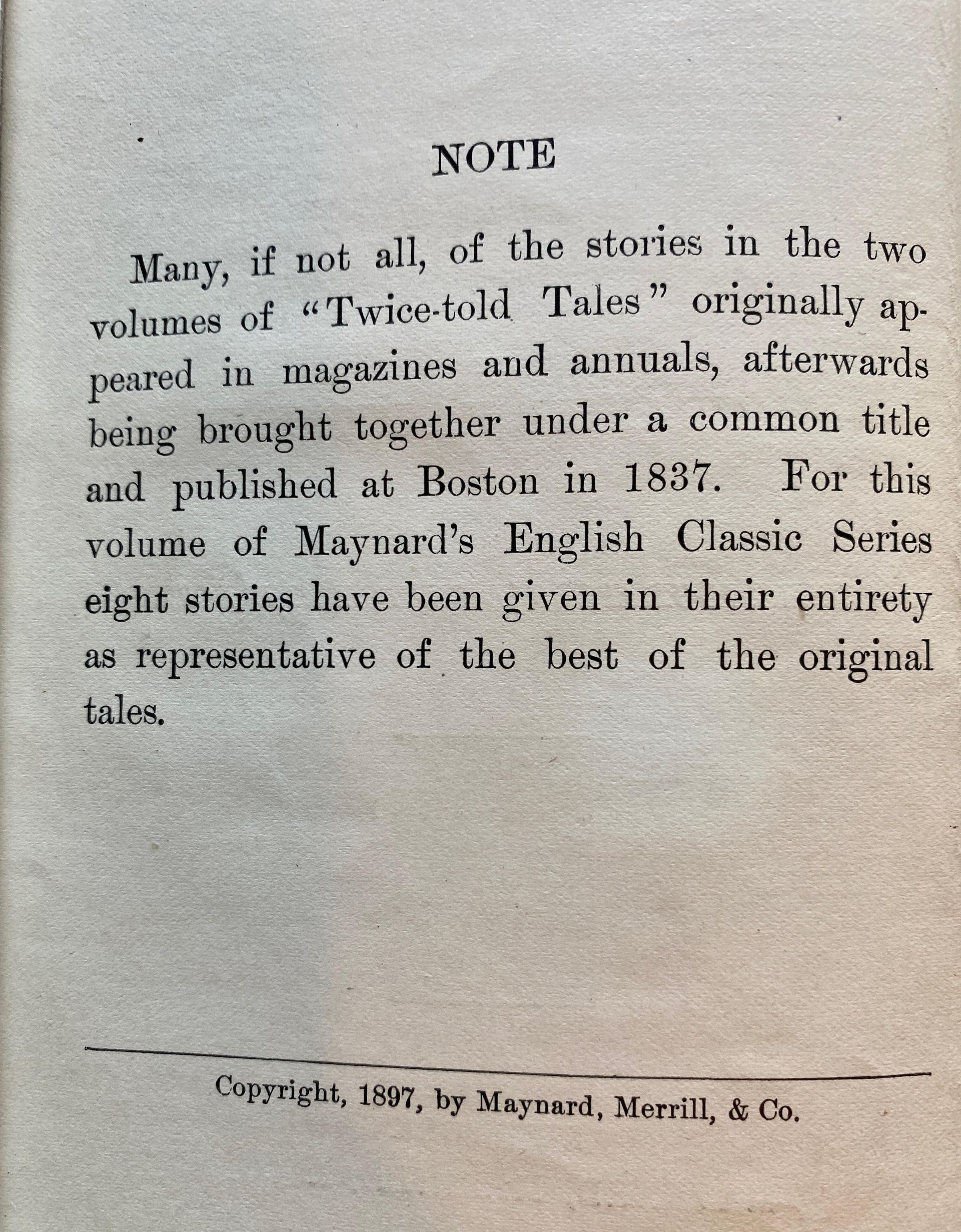 Twice Told Tales by Nathanial Hawthorne, 1897 EditionCataloged By