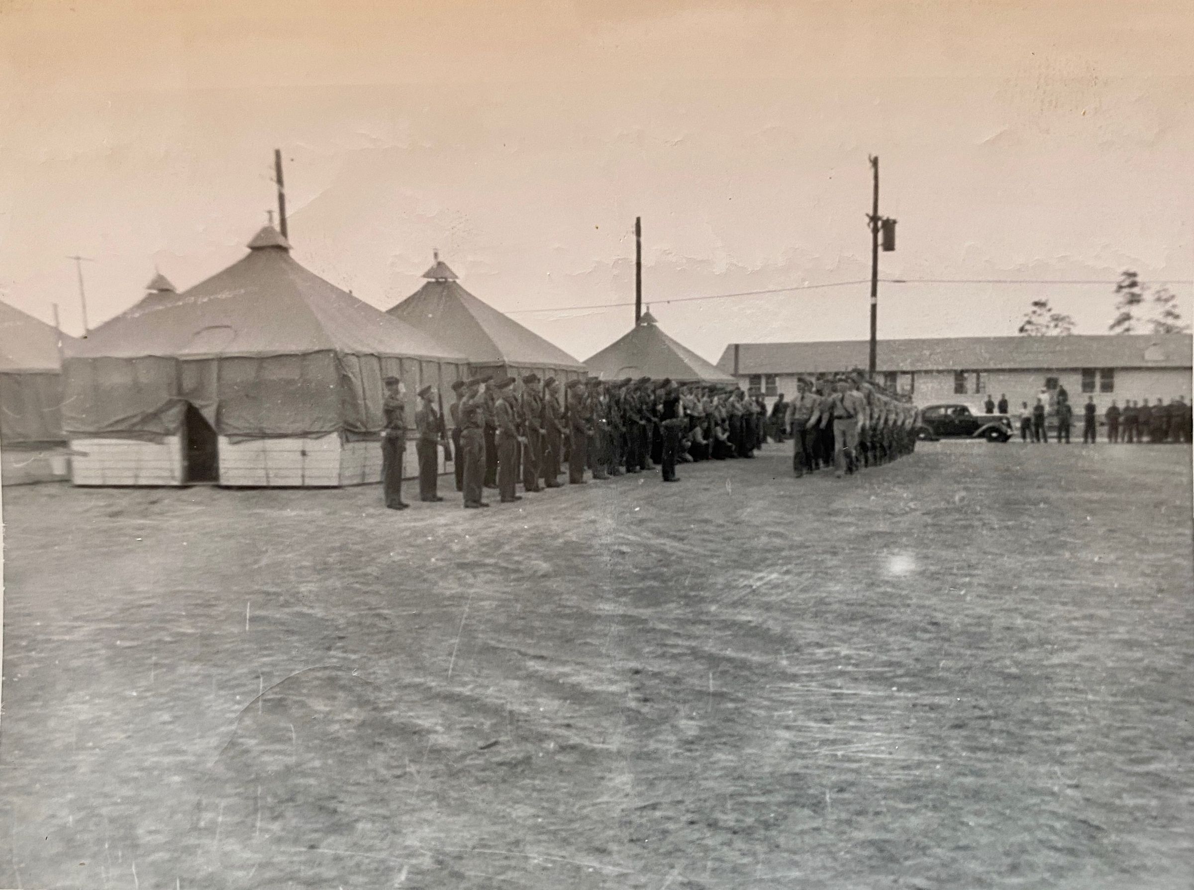 ND National Guard, Company L Infantry troops in formation at WWII training Camp Claiborne, LA, in 1941Context