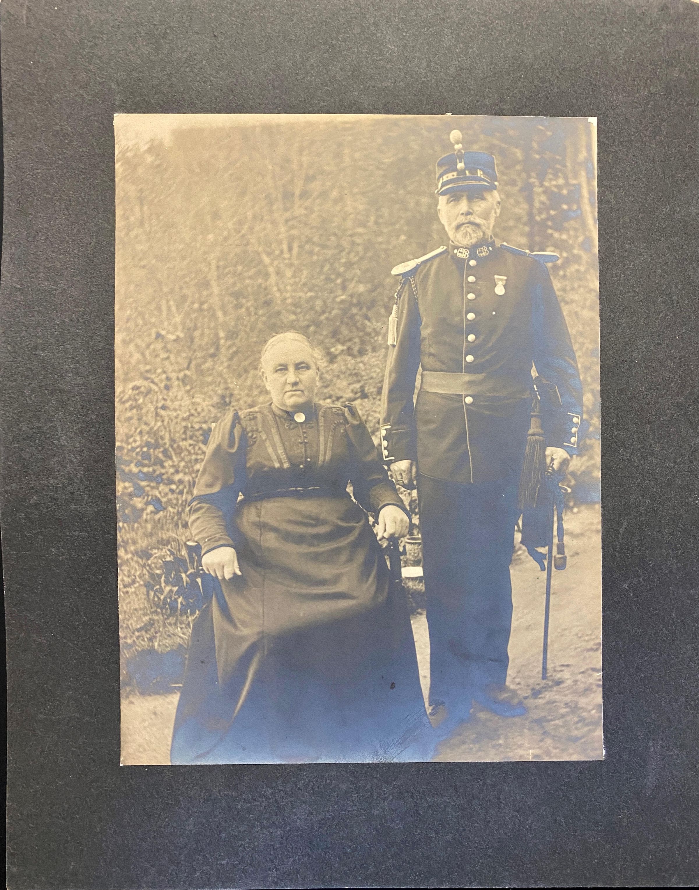 Unknown Woman and Man in Uniform - writing on back of photo may identifyCataloged By