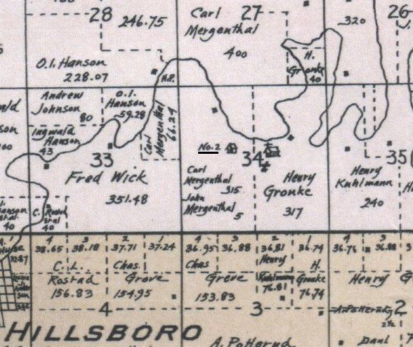 Eldorado School No. 2 was located along the Goose River in the NW Qtr. of Sect 34 (see 1900 map, below), which is about 2 miles NE of Hillsboro and near the Immanual Lutheran Church and Cemetery.Acquisition