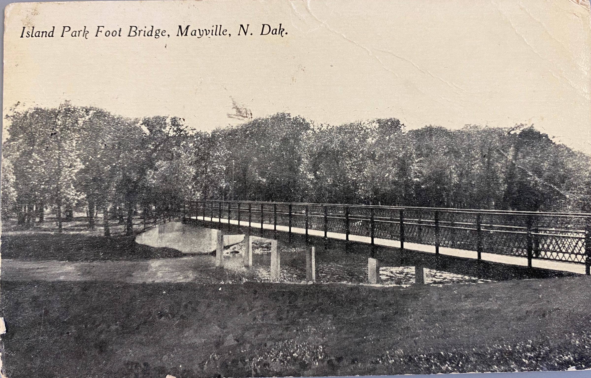 Postcard - Island Park Foot Bridge, Mayville, NDEntry/Object ID