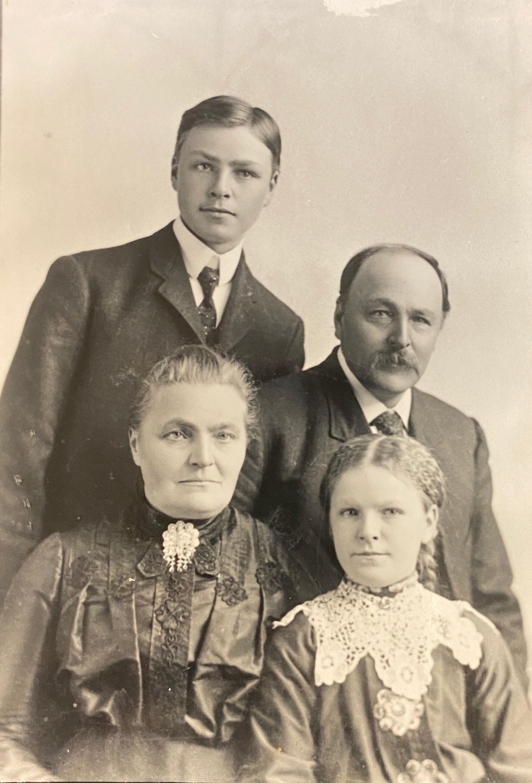 Copy of a photo of Glova & Petter Soren Waslien and their children Selmer & Mina (Waslien) NysveenCataloged By