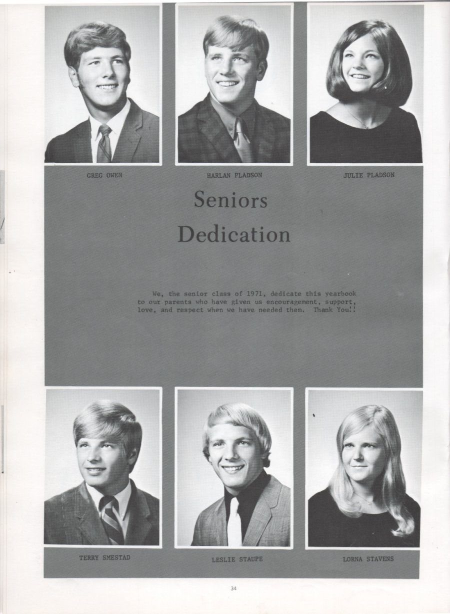 The Class of 1971 dedicated their yearbook to their parents (see Senior photos on page 34).