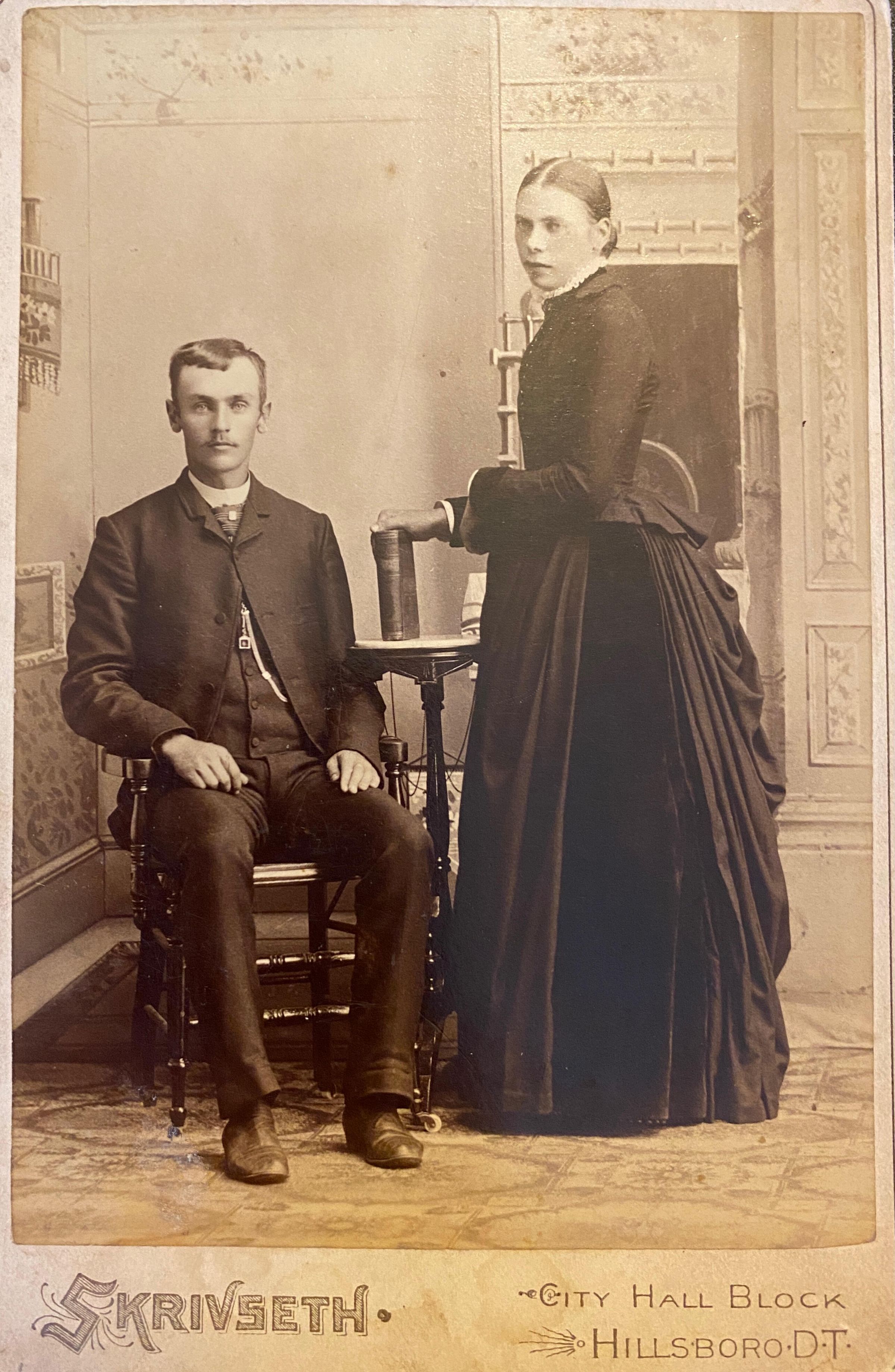 Young couple, taken in Skrivseth Studio, Hillsboro, Dakota TerritoryCataloged By