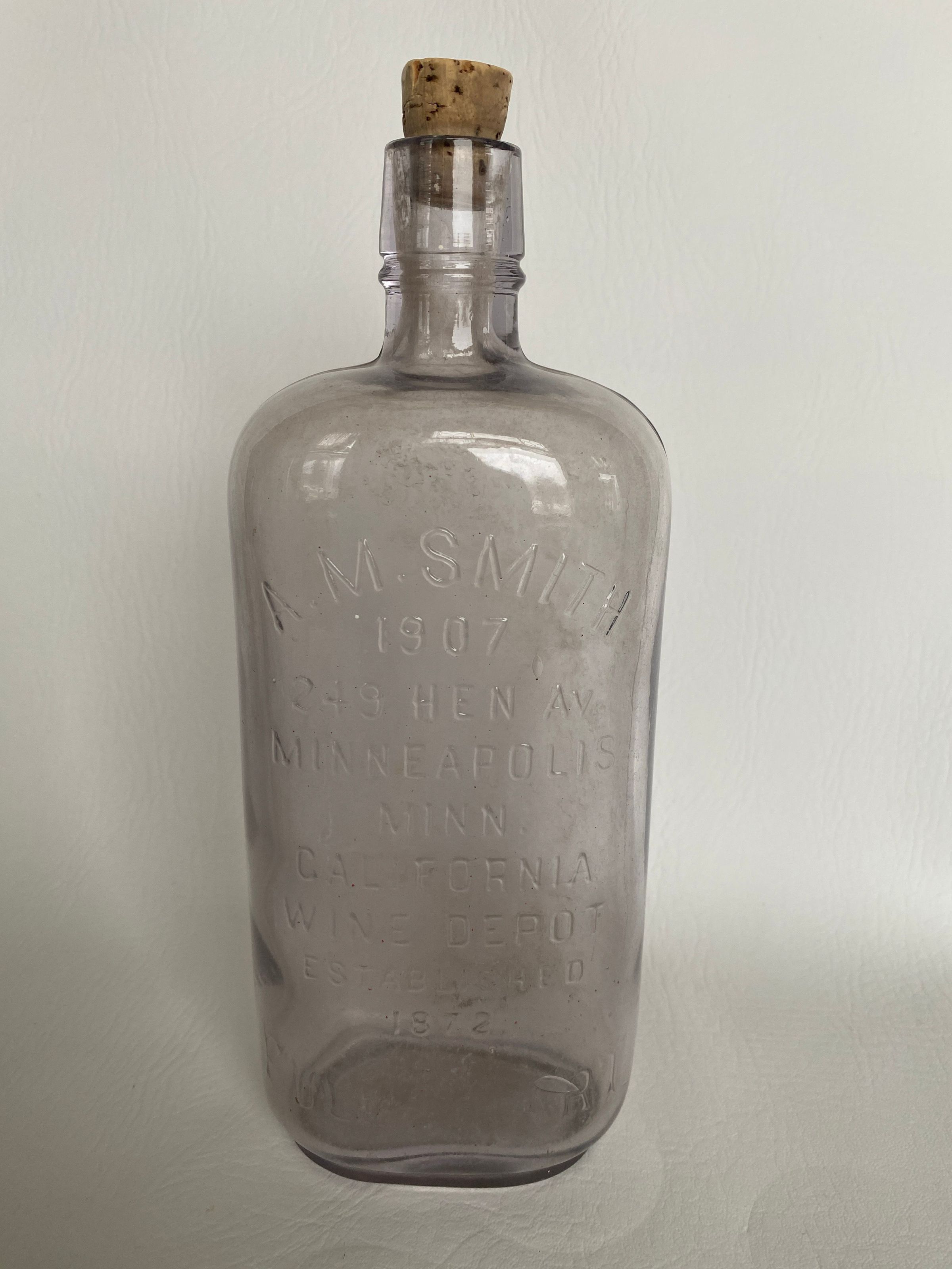 A. M. Smith Bottle - 1907 Wine Bottle, 249 Hen. Av., Minneapolis, Minn., California, Wine Depot, Established 1872Cataloged By