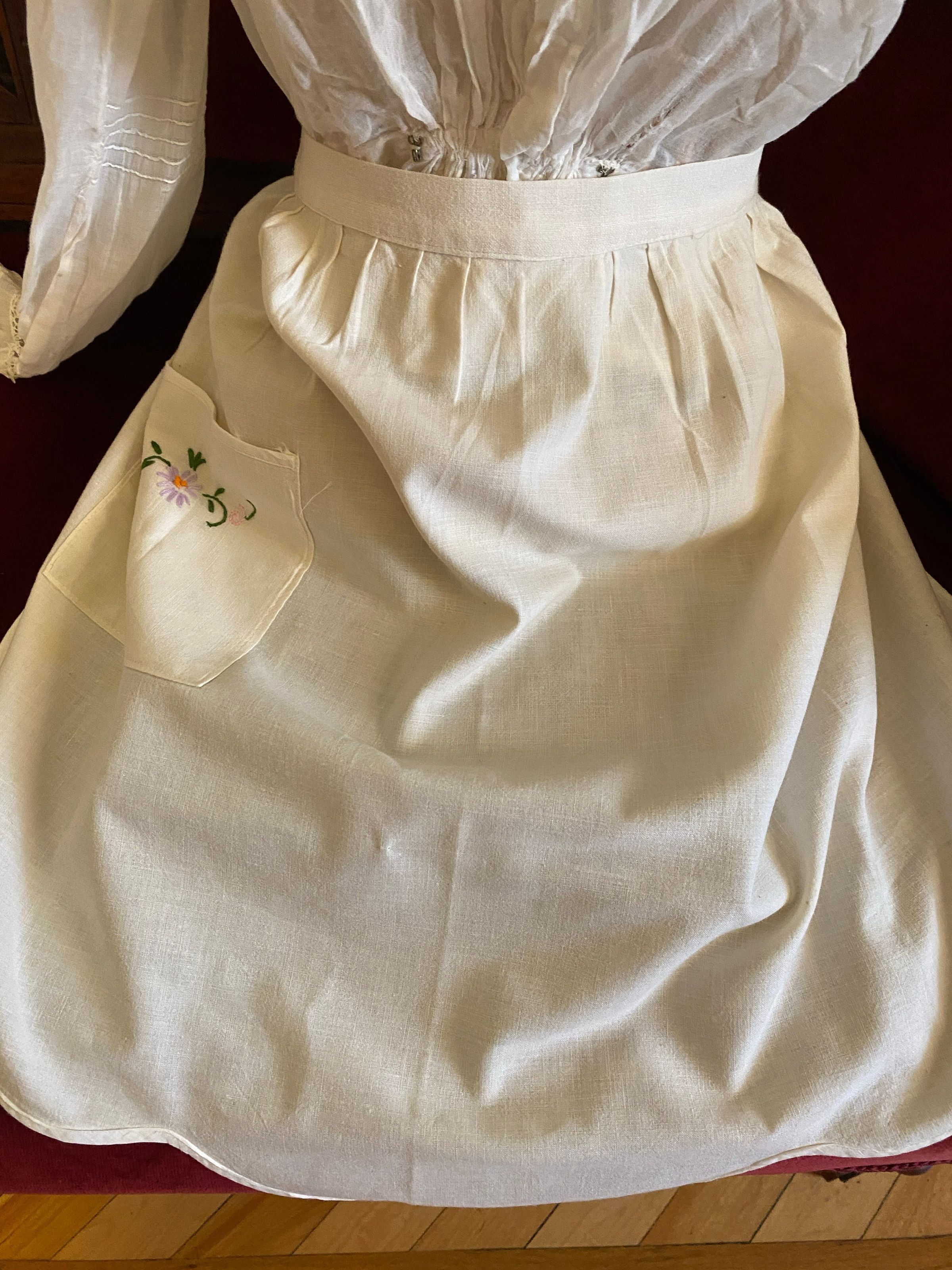 Unbleached Muslin with Escalloped Bottom used by Alice Peerson.Cataloged By