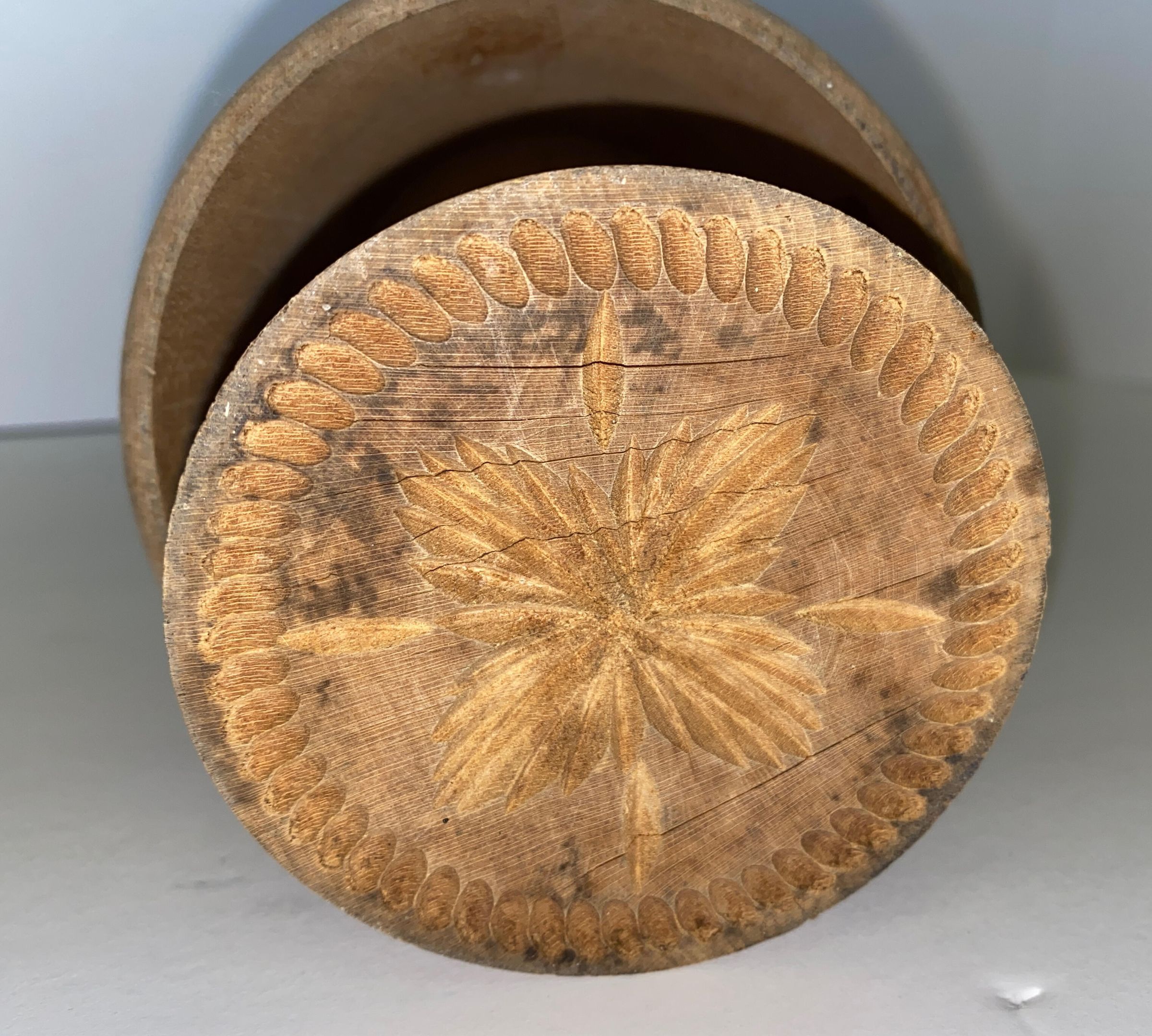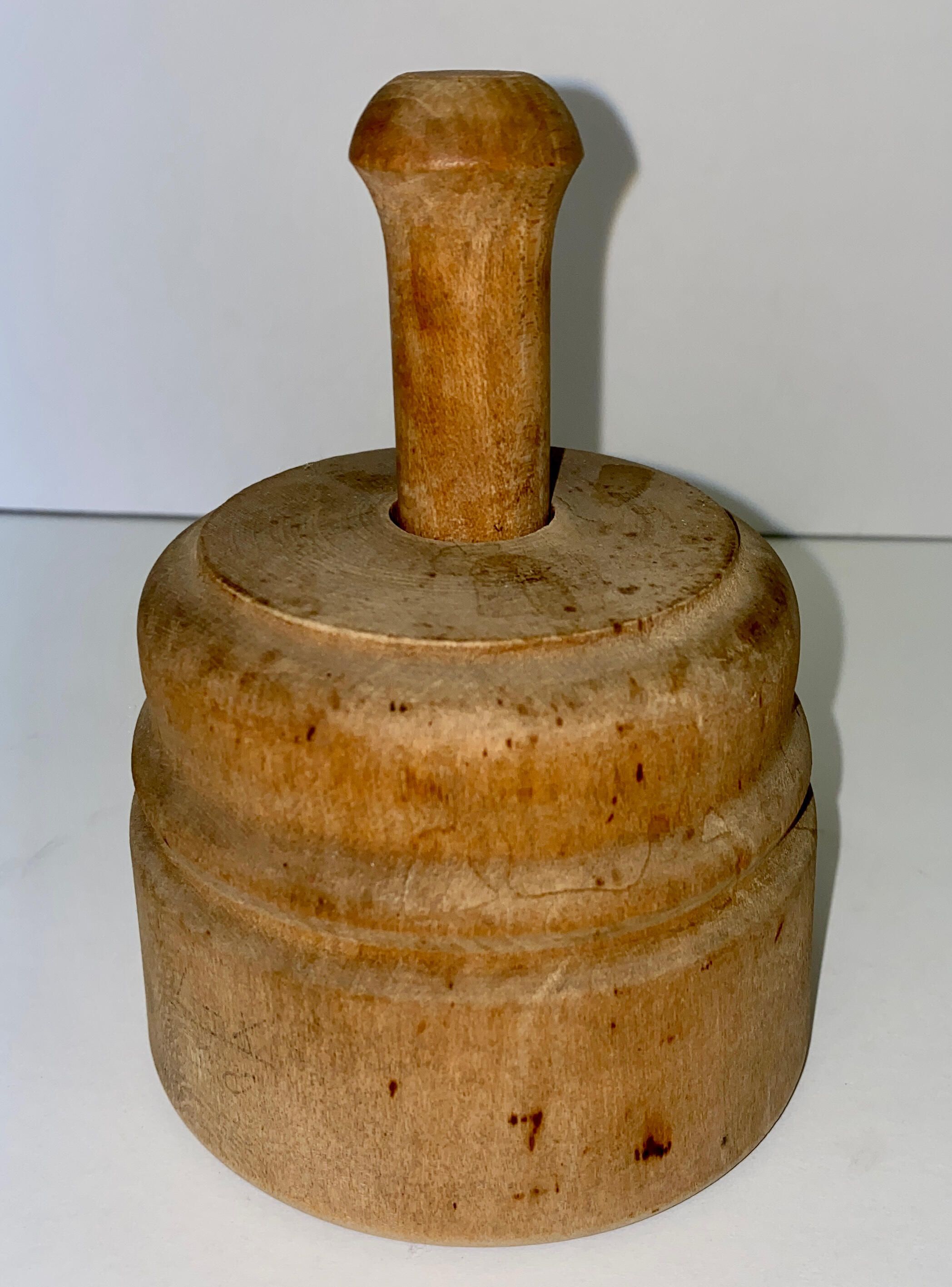 Wooden Butter Mold with the initials T. S. written insideCataloged By