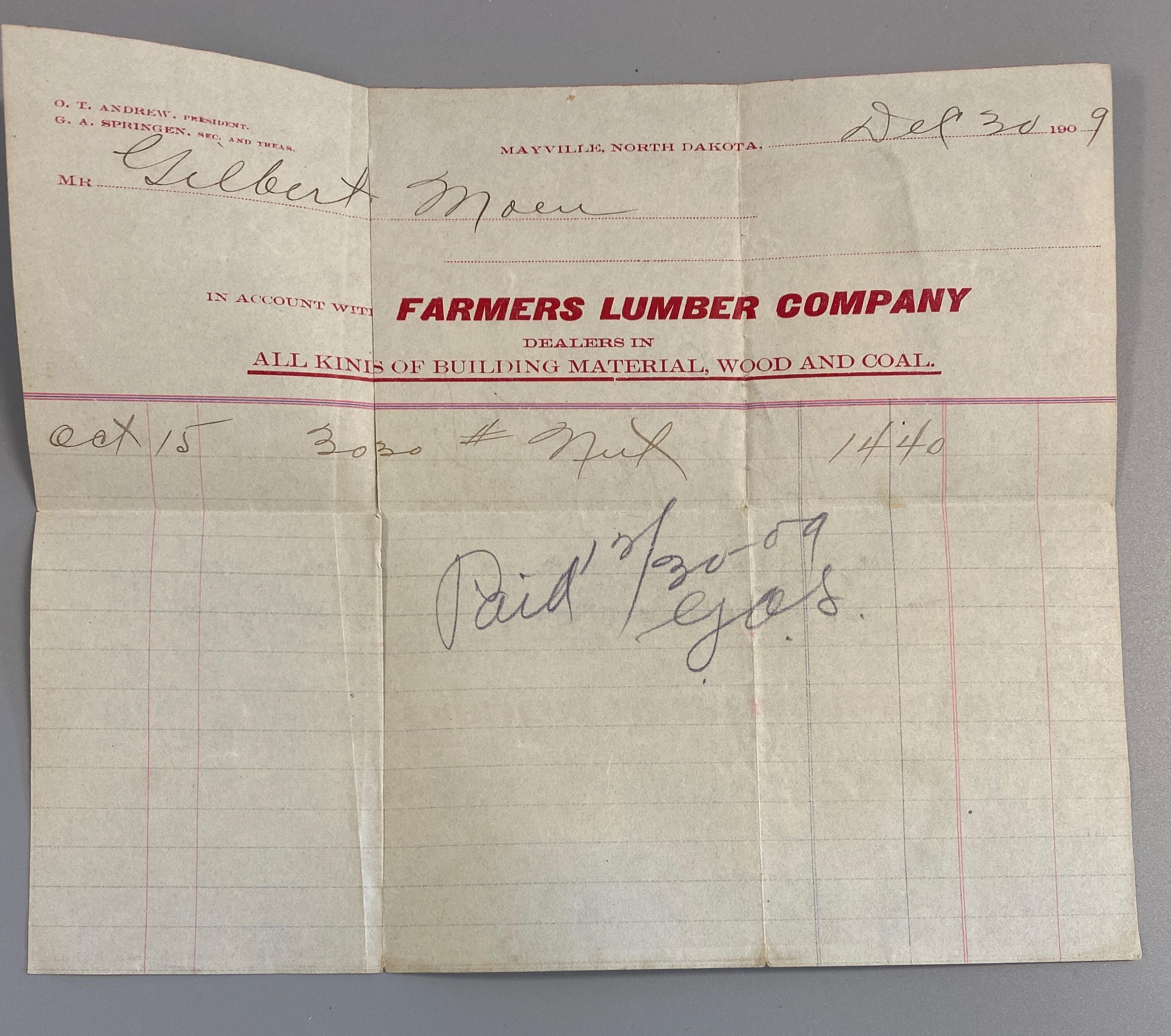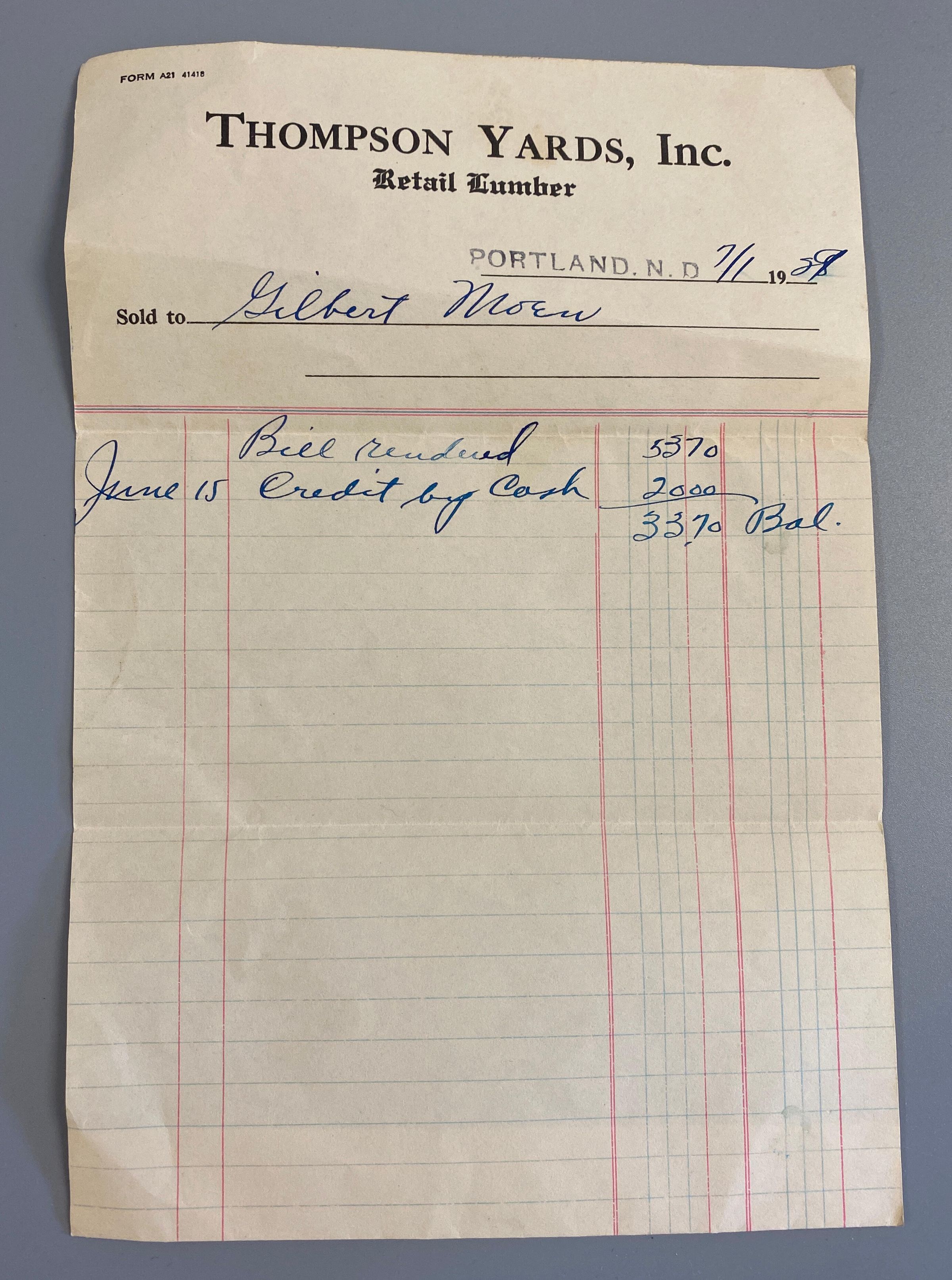 Gilbert Moen - Bank and Business ReceiptsCataloged By