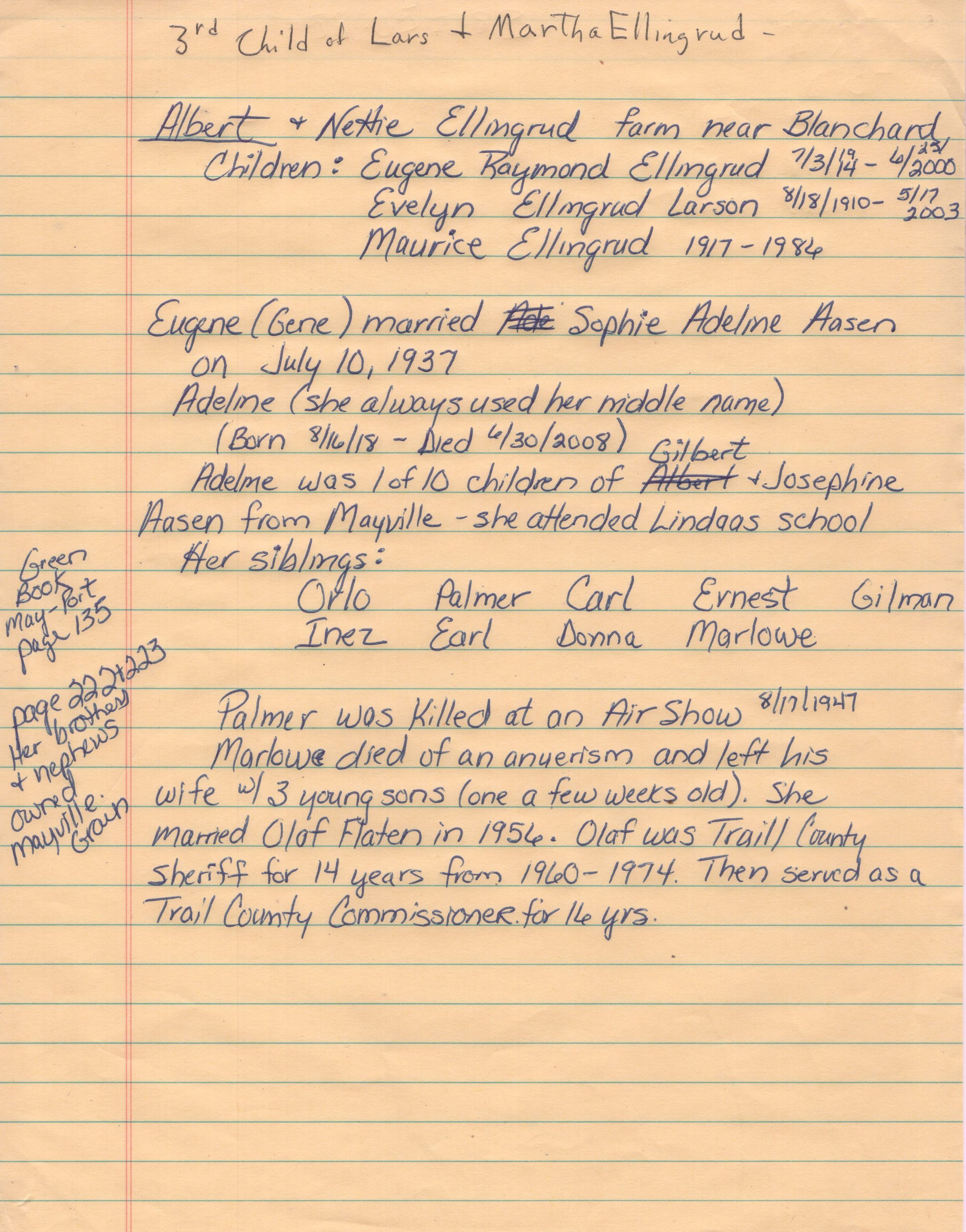 Additionally, the folder has one-page about Lars and Martha Ellingrud's third child, son Albert Ellingrud, and Albert's wife Nettie and their children (below).Acquisition