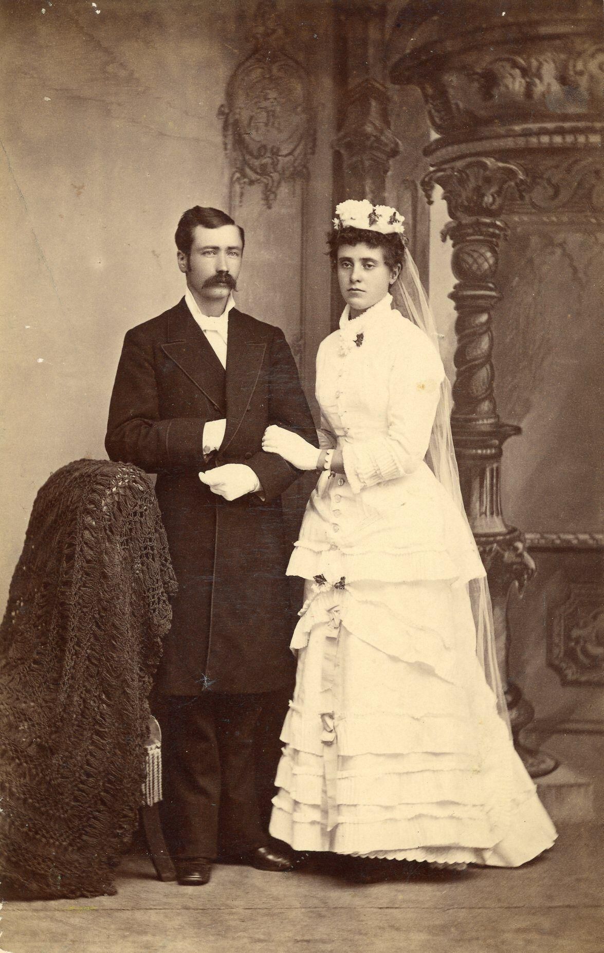 Mr. (Jacob L.) & Mrs. (Bertha nee Christenson) Skrivseth Wedding Photo, June 1880, FargoCataloged By