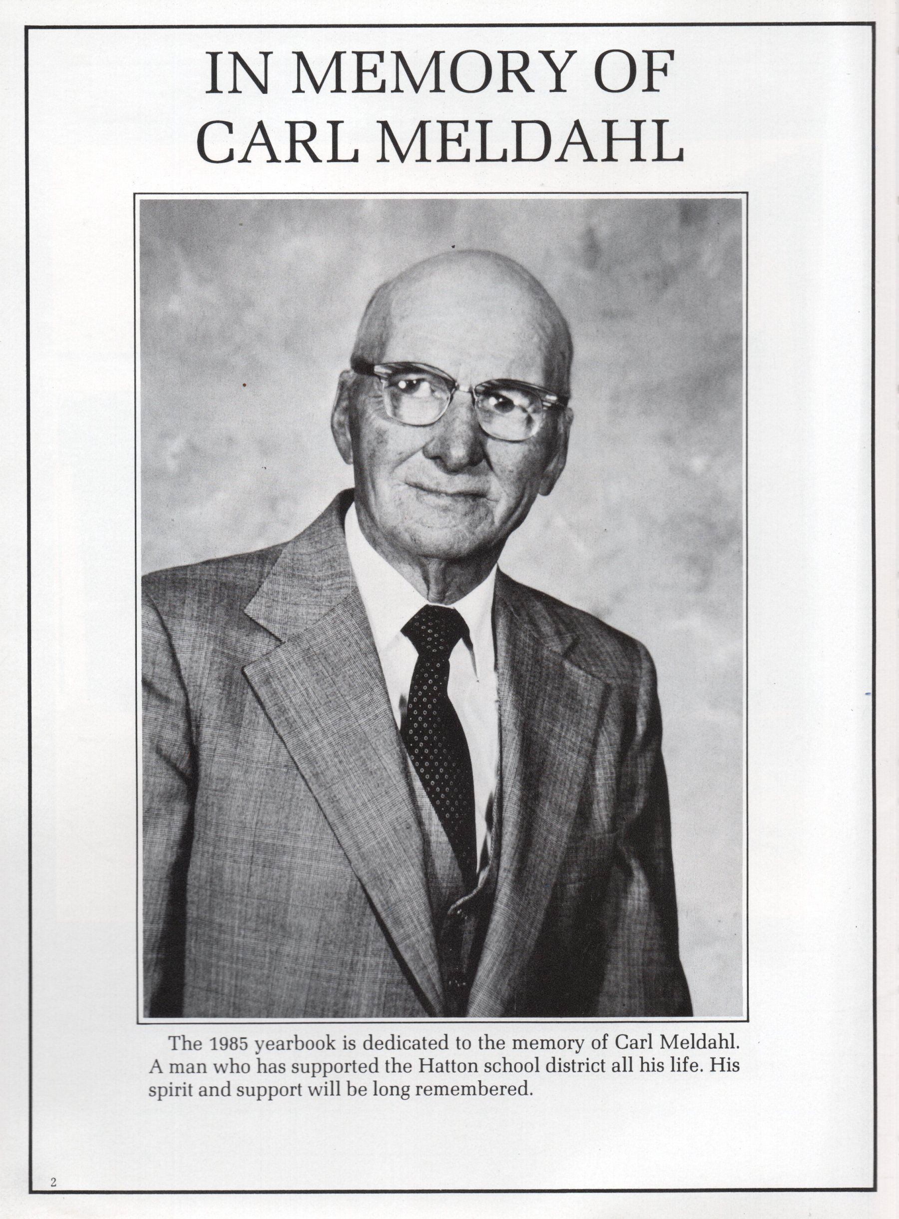 The Class of 1985 Hatton High School Yearbook, Hattonian Eighty Five, was dedicated to the memory of Carl Meldahl.