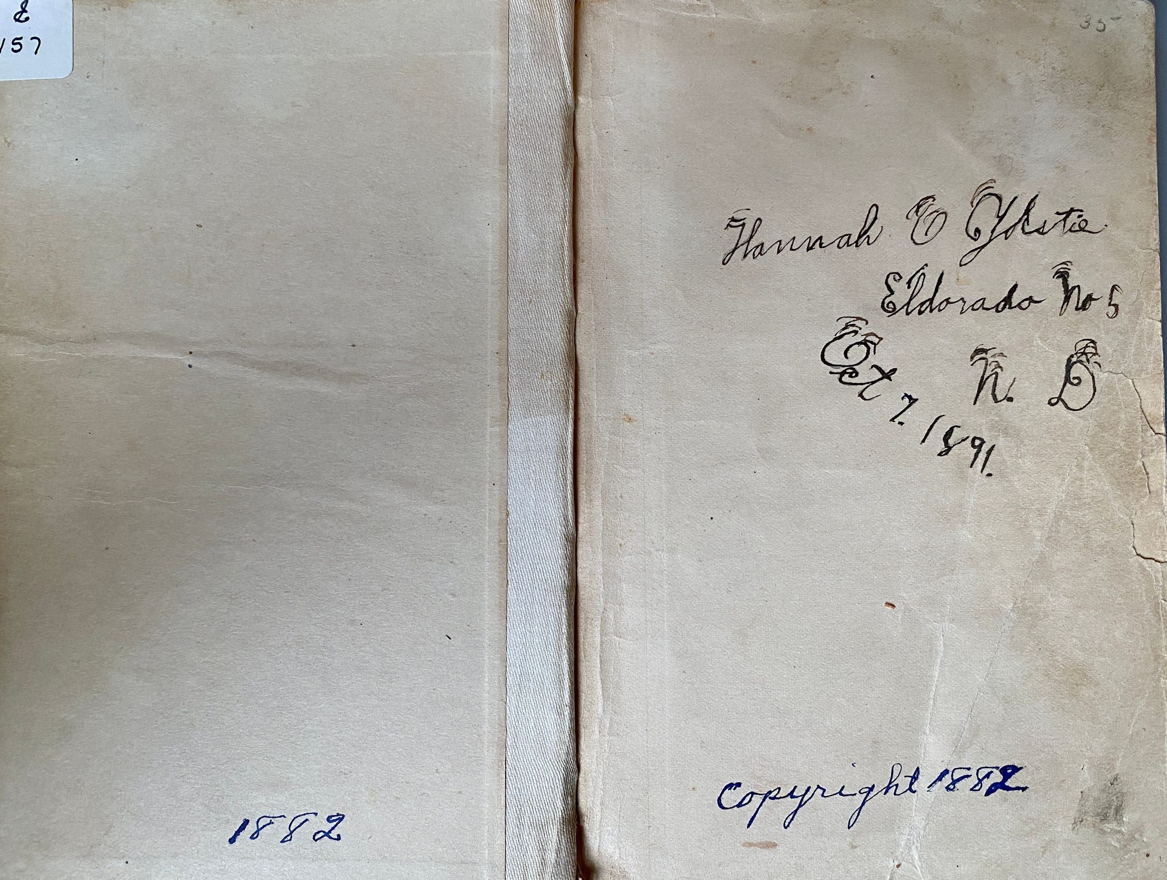 Swinton’s Second Reader - 1882. Inside cover has written Hannah Ydstie, Eldorado No. 5, October 7, 1891.Cataloged By