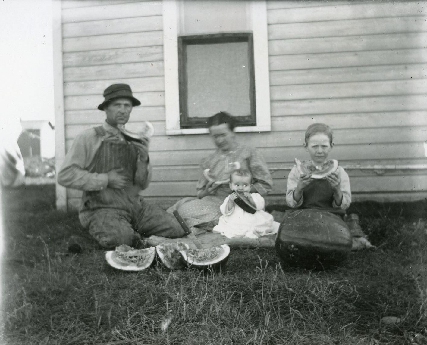 1914 Photo of Andre Family outside eating watermelonCataloged By
