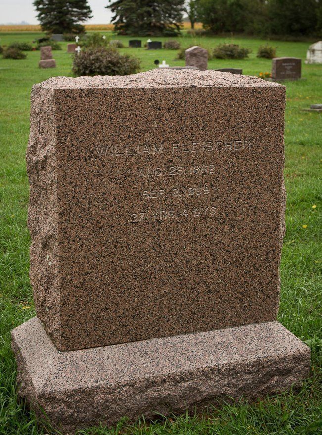 Bill and Lizzie Fleischer's only son, Charles William (Chas) Fleischer was born on 7 January 1893 on the family farm in Bohnsack Township in Traill County, where he was raised. Chas did not marry and at the time his death on 22 May 1931, at age 38, he resided in San Francisco, California. Chas was interred back at Riverside Cemetery in Hillsboro, ND.