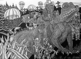 Parachuting Rattlesnakes- In order to combat the growing rodent problem here in Kentucky, there is rumor that the game and wildlife association has begun parachuting Rattlesnakes in the forests and mountain areas...I hate snakes...so I hope not!Artwork Details