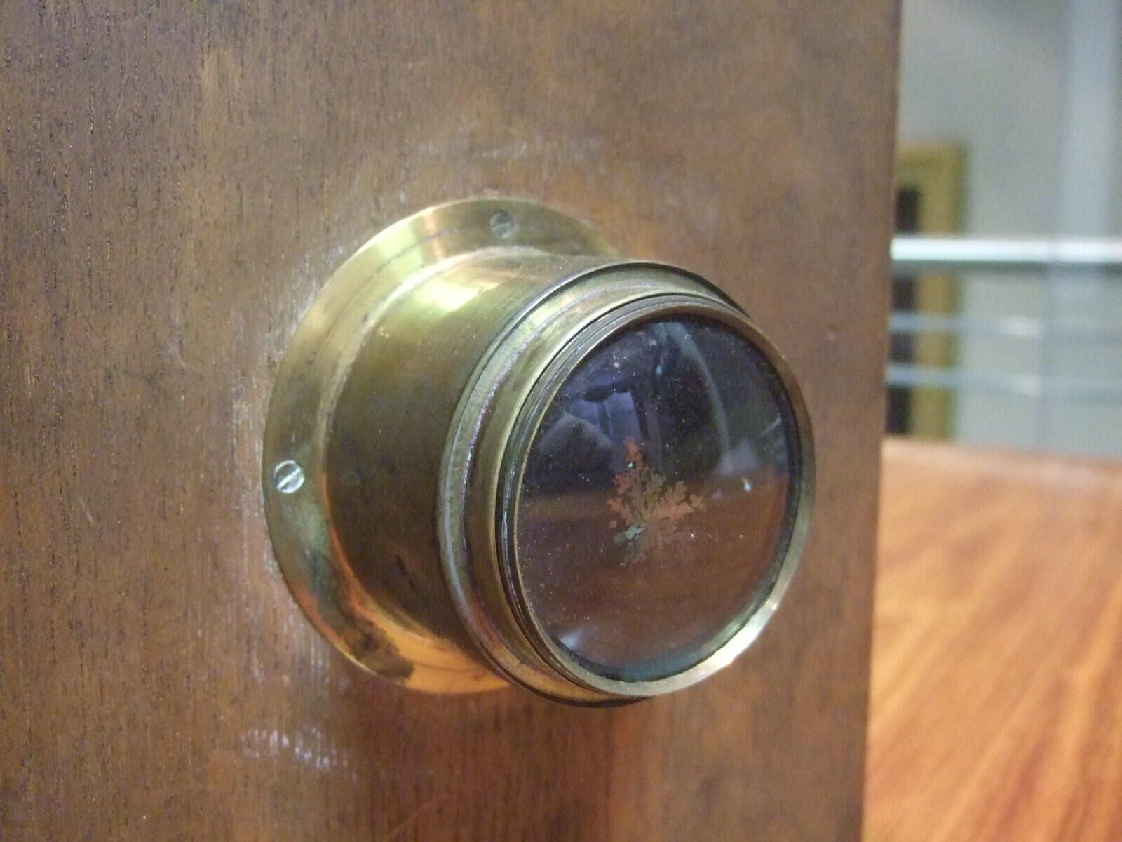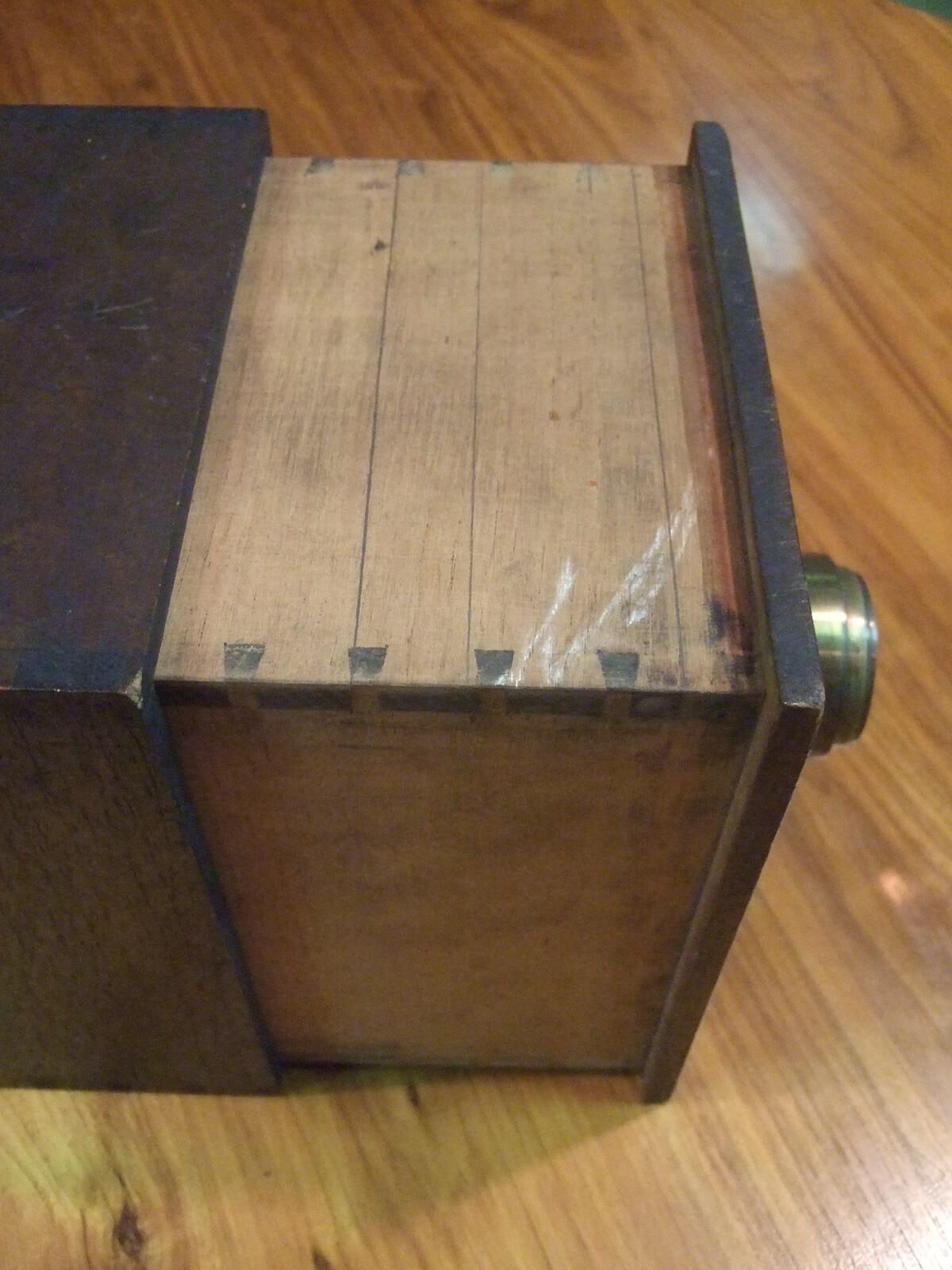 This camera was built by Dr. Robert Peter, on the medical faculty at TU in the 19th century. Based on Peter's notebooks, we know that he met an agent of Daguerre on a ship from Europe to the Americas in the 1830s. This camera was built by Peter shortly after that encounter. It is believed to be one of the earliest cameras in North America in the daguerreotype style. The camera was examined by the Eastman Kodak House in 2010. It measures 8-1/8 x 9-1/8 inches. The lens is 2 inches in diameter.Collection