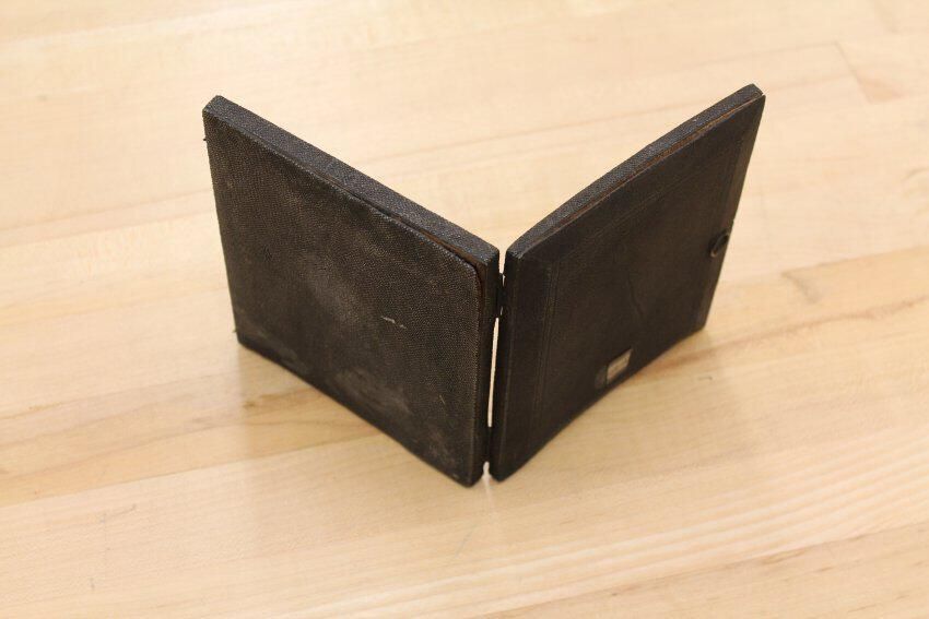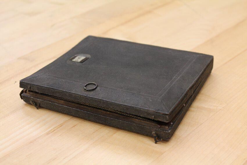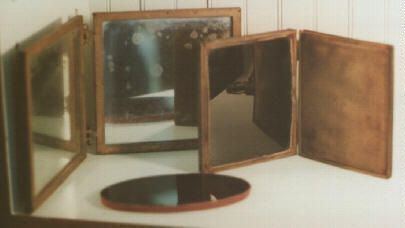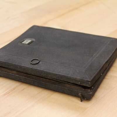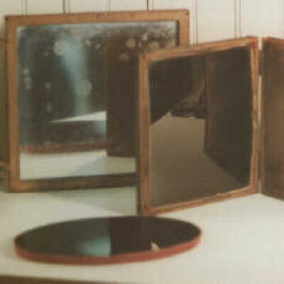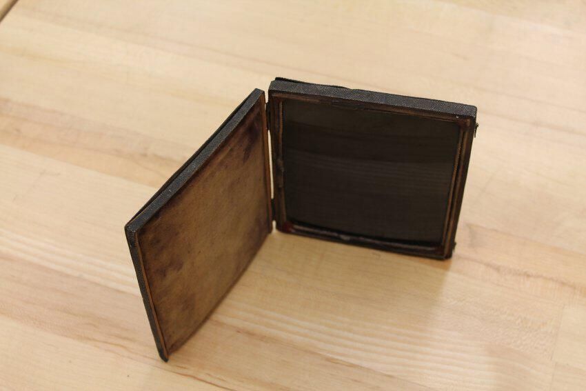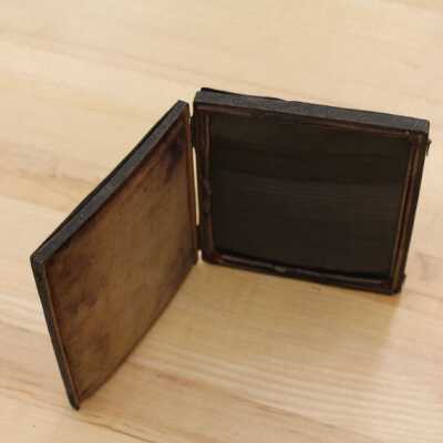 A black glass mirror that is sometimes called a landscape mirror. It was used "to facilitate the delineation of landscapes in perspective." Another catalogue states, "Obsidian, Claude Lorraine, or Landscape Mirror...for condensing landscapes in true perspective view, and imparting a soft shady tint to the natural colors; a most valuable acquisition for the artist." (Gall & Lembke. Illustrated and Descriptive Catalogue, Etc., New York, 1870.)Collection