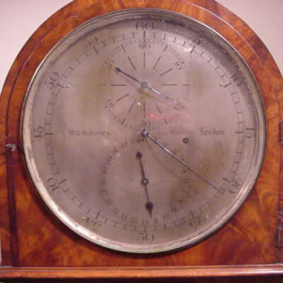 This clock, as the statement from Philip Fall shows, was valued by him at $450.00. It was made by W. & S. Jones of London a century and quarter ago and today, when wound, keeps excellent time. The clock is designed to show sidereal time. The hours from 0 to 24 are shown on the lower dial, the seconds on the upper dial, while the outer sweep hand is the minute hand.Collection