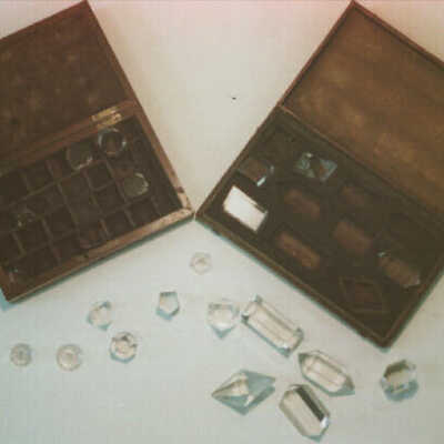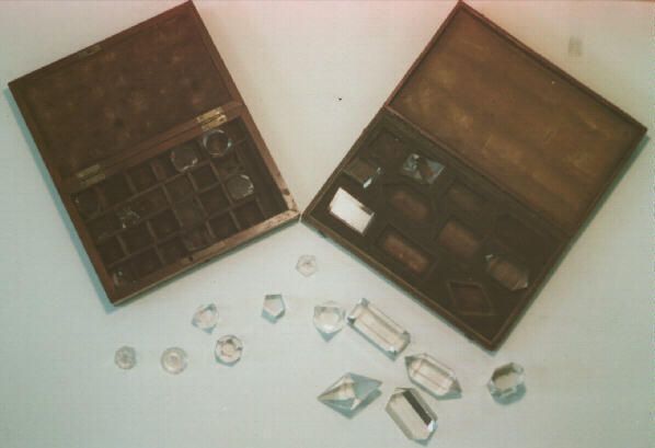 The museum has two trays of solid glass models of various geometric forms. These two trays still contain a total of twenty-nine pieces. They probably were used in crystallography. There is also a third tray which contains a few odd shaped glass pieces. These probably were designed to be used with polarized light. The museum has a miscellaneous collection of wooden geometric models.Collection