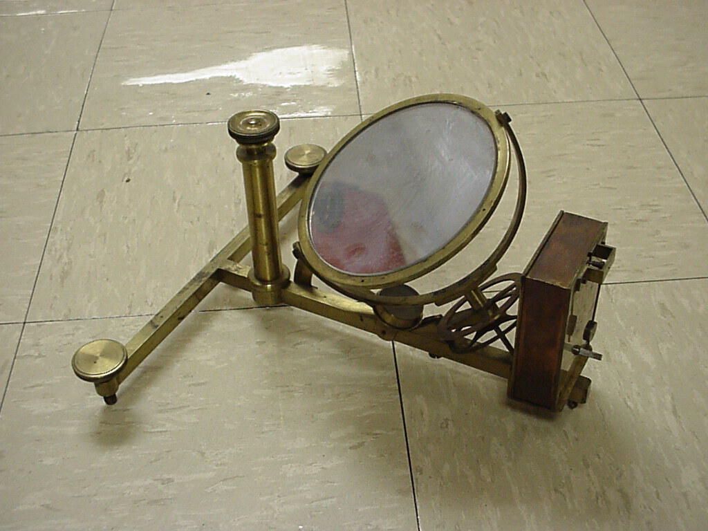 This optical instrument was used to fix the sun's image for various kinds of observations needing a bright light. The mirror is four and one-half inches in diameter. It is in good working condition.