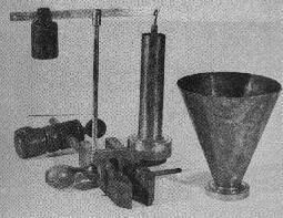 Apparatus used to illustrate the principle "that a quantity of fluid however small may be made to counterpoise a quantity of fluid however large." The experiments using this apparatus, or one similar to it, are described in almost every early treatise on natural philosophy. The cylindrical water contained is in position. The funnel shaped container is threaded so that it can replace the cylindrical one.Collection