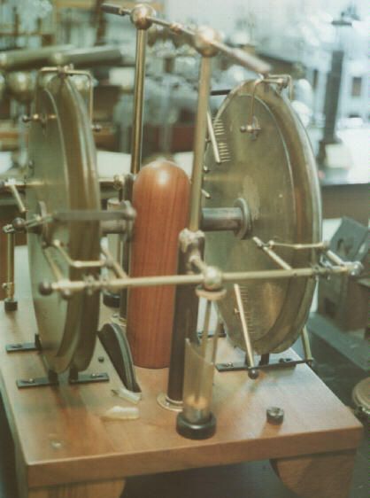 This instrument, known as the Toepler-Holtz Electrical Machine, develops electricity with great rapidity without friction. "Toepler constructed as influence' (induction) electric machine in 1865. Holtz constructed many influence machines between 1864-80" (11th Edition, Encyclopedia Brit., Vol. IX).Collection