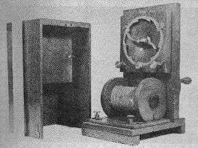 The revolving spring arm makes and breaks electric contact with the notched circles of different metals. If the spring is of the same metal as the circle there will be a different colored spark for each metal. This is listed in Pike's 1856 catalogue as "Lockey's Coil Machine, with Scintillating Circle $12.00."