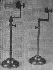 In this set are two glass prisms on adjustable brass stands, a hollow prism on a brass stand, and a fluid prism. With one exception these are the only prisms left to the present time out of the considerable number which were purchased during the early days of Transylvania university. In fact, among the items purchased from Fall there is listed "A hollow prism $6, Two glass prisms, $9." And among the items purchased by Peter from Pixii we find, "2 prisms mounted, 1 hollow, 70 fr." Since no makers' names appear on the instruments, they cannot be fully identified, but since the three stands are of similar brass and of similar construction they would not appear to be those mentioned by Fall.