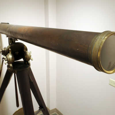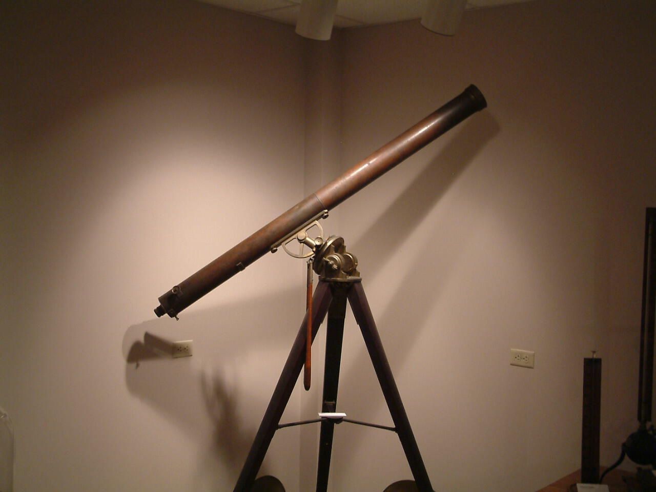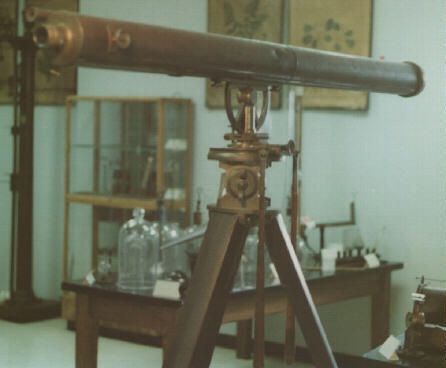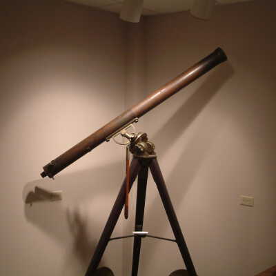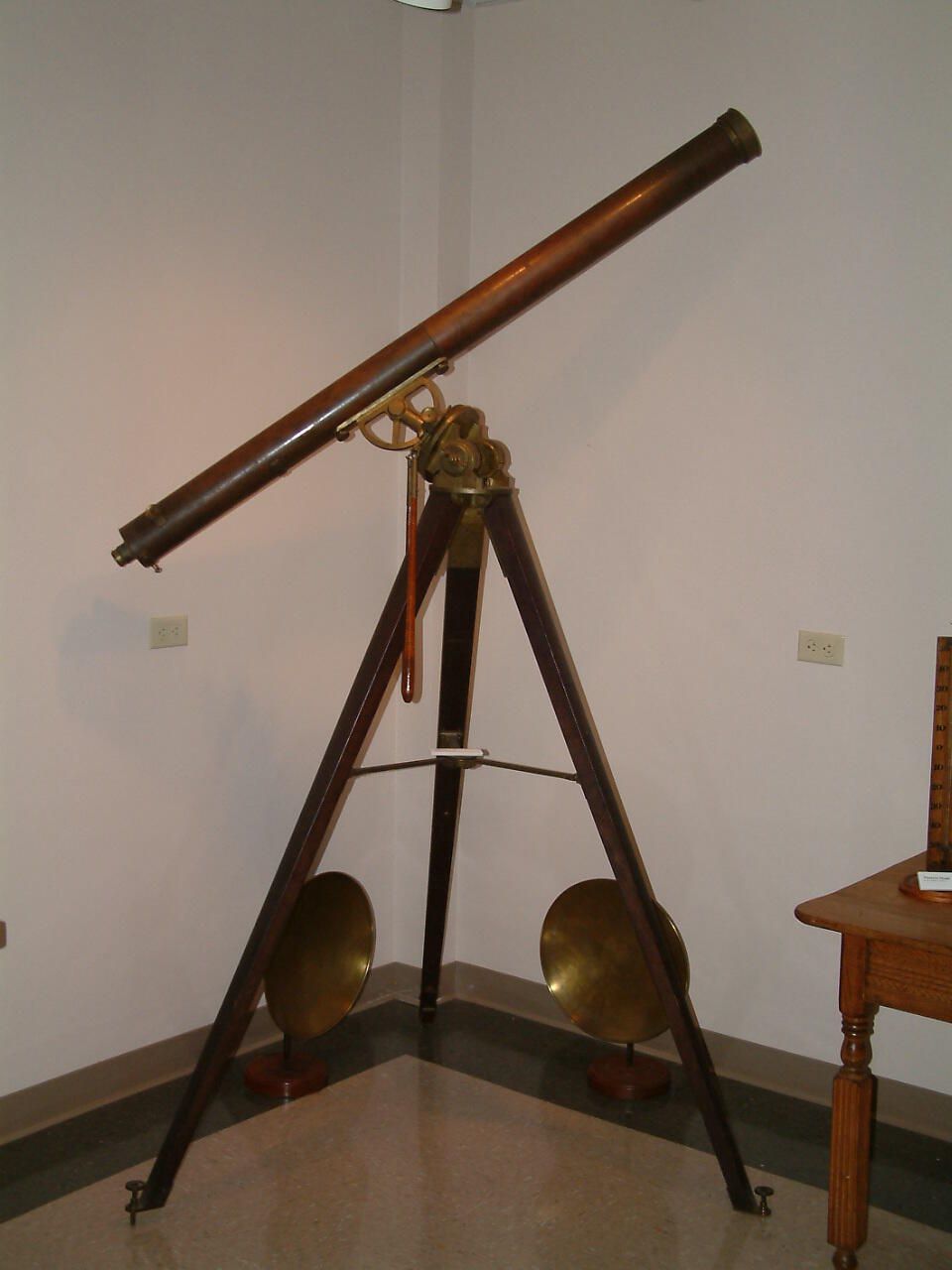 A very complete instrument. It has both astronomical and terrestrial eye glasses. It should be described technically as a five-foot, four-inch aperture, achromatic, refracting telescope. It is equatorially mounted.