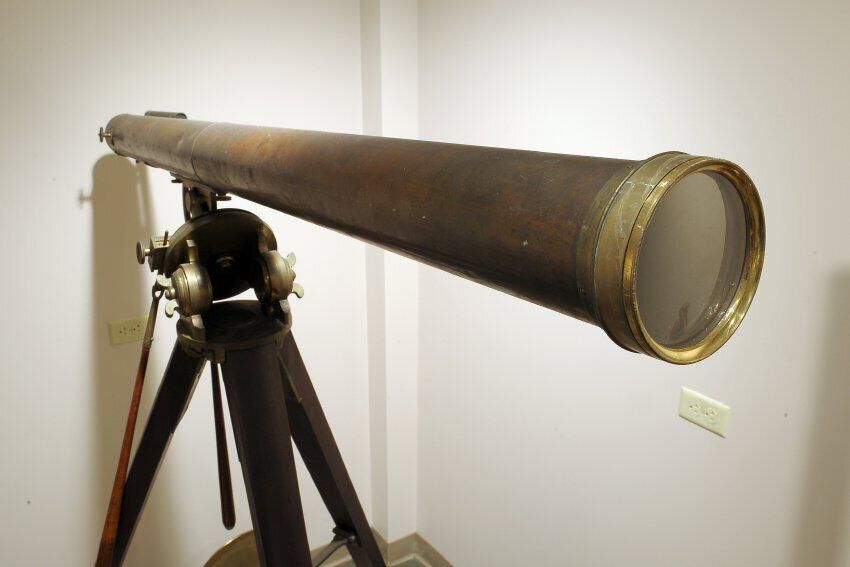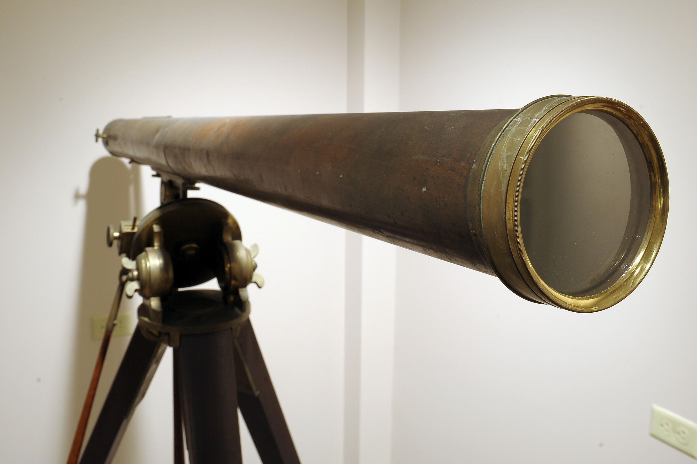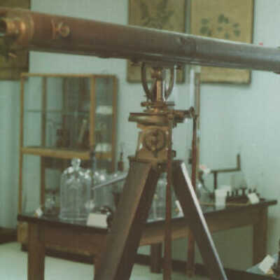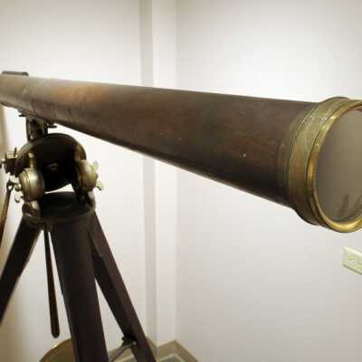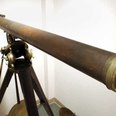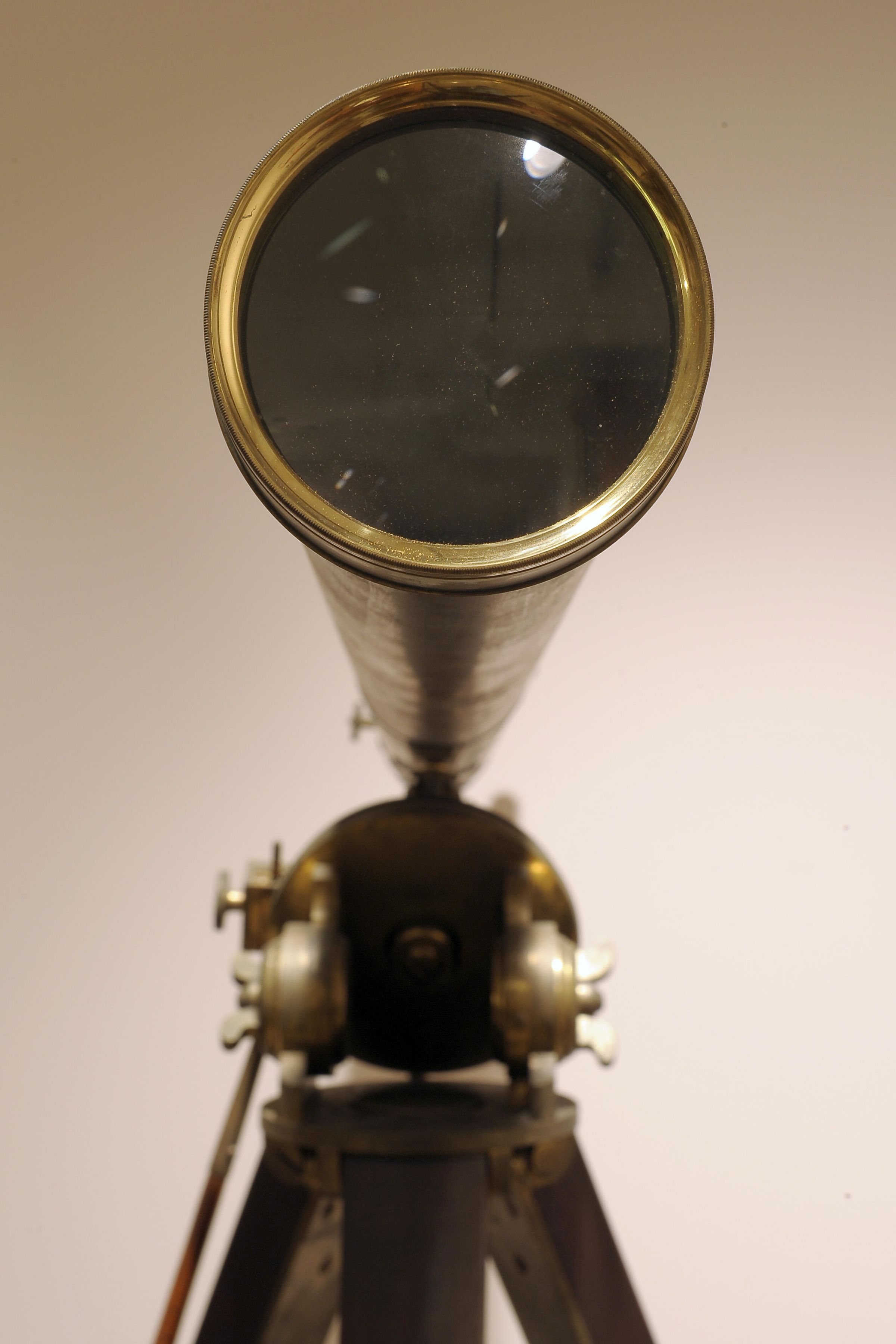 A very complete instrument. It has both astronomical and terrestrial eye glasses. It should be described technically as a five-foot, four-inch aperture, achromatic, refracting telescope. It is equatorially mounted.