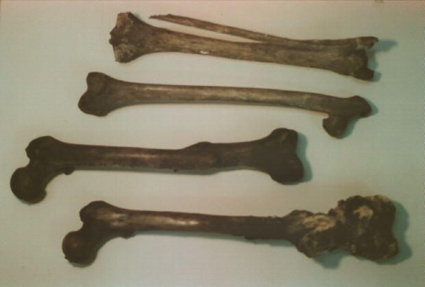 Many specimens have remained to use from the early medical school. They show various abnormal and pathological conditions such as -- a) osteomyelitis of the tibia, b) thigh bone from dislocated hip, c) ankylosed bones of shank, d) a broken thigh bone which was never set, e) probably an osteoma (tumor) of the thigh bone, and f) two skull caps one having been trephined and the other showing a depressed fracture of the frontal bone.Collection