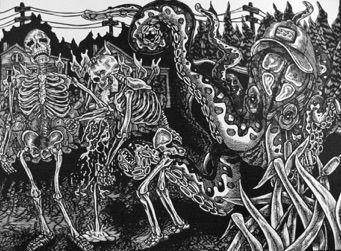 Woodcut print by Derrick Riley KY Monster Mash Series
