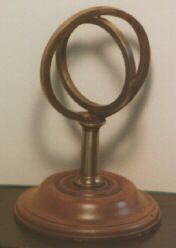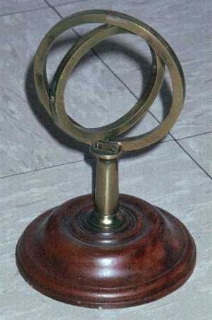 Apparatus is 7" tall. The inner brass circle spins freely on a vertical axis. If this is a Bohnenberger's apparatus, it is a precursor to a gyroscope and also missing an inner piece.Collection