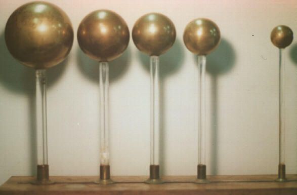 Storage spheres for static electricity demonstration. When charged (using a static electricity generator) sparks would jump from sphere to sphere.Collection
