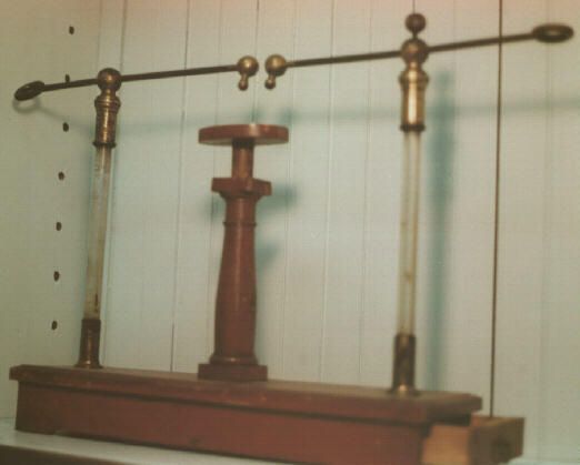 This apparatus, measuring 13.5" by 21", has two horizontal rods that can be moved in and out and rotated in place. The base of the apparatus has a drawer.Collection