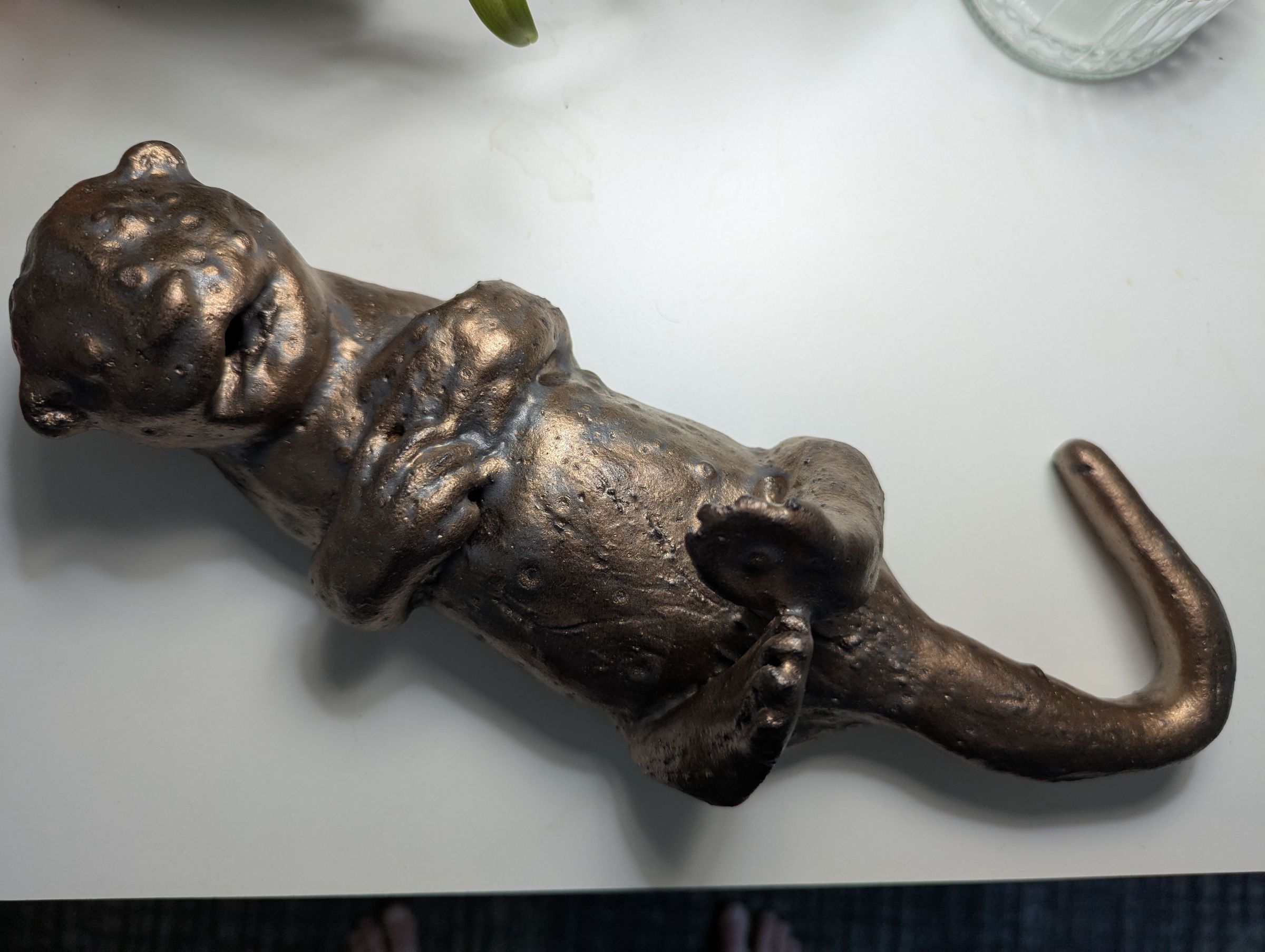 Ceramic sculpture of otter floating on its back.