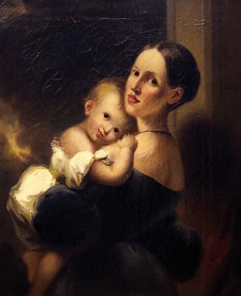 Portrait of Charlotte Bush holding daughter Nannie Massie by Joseph Bush.